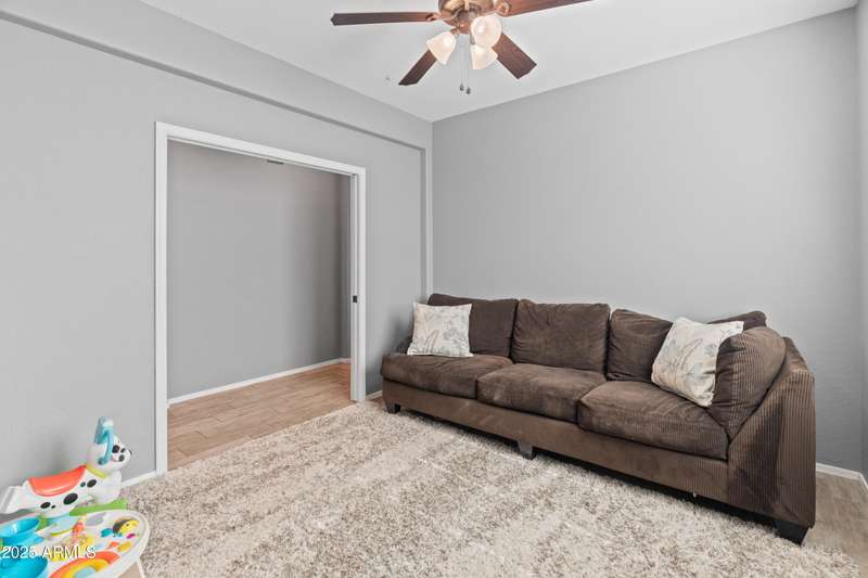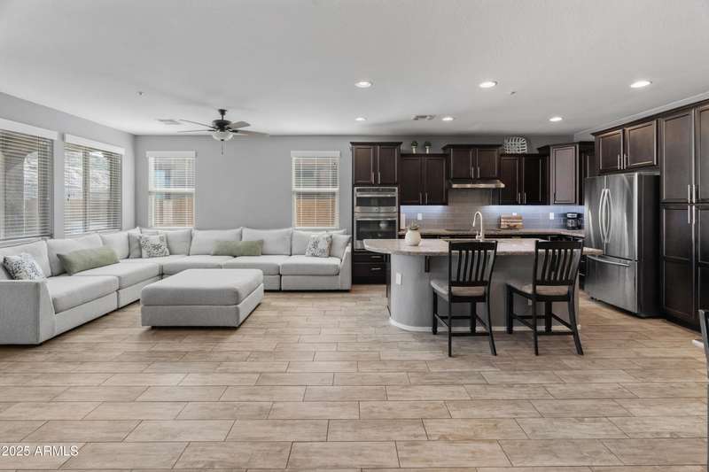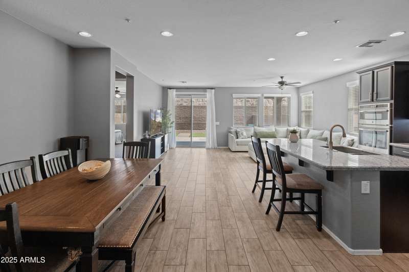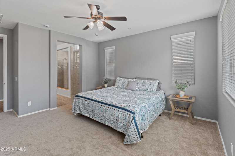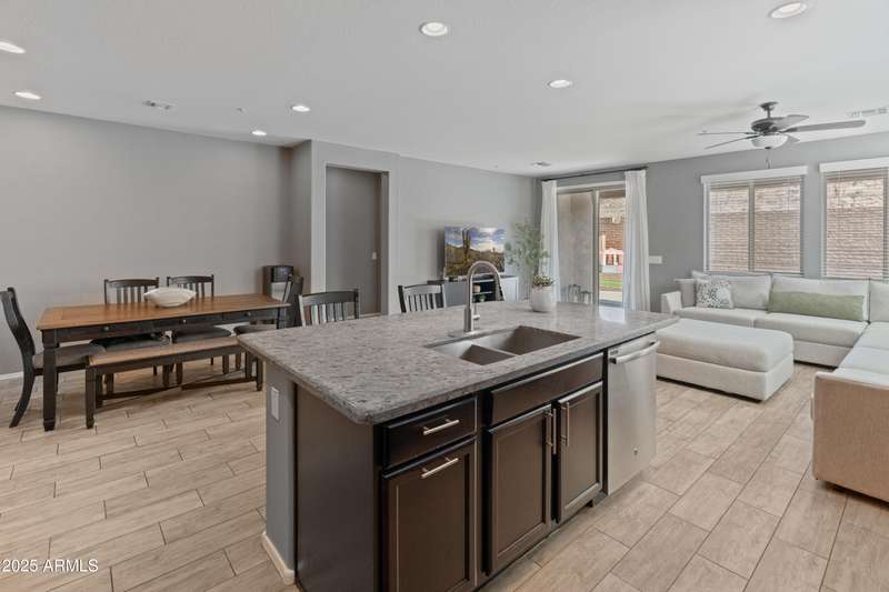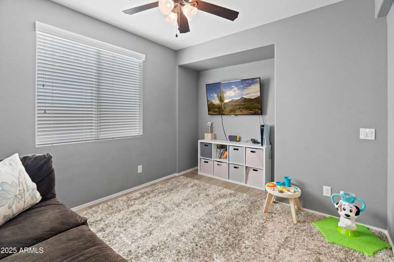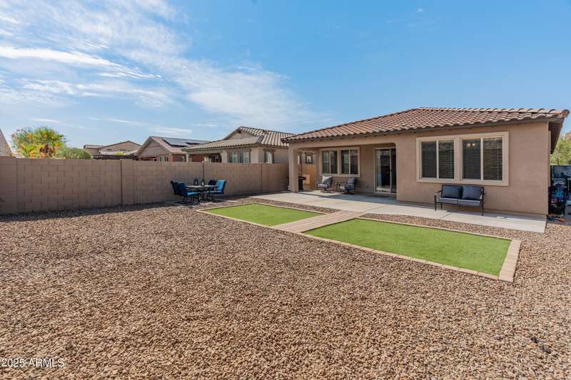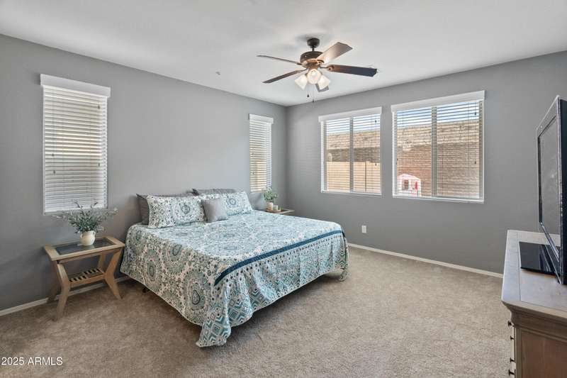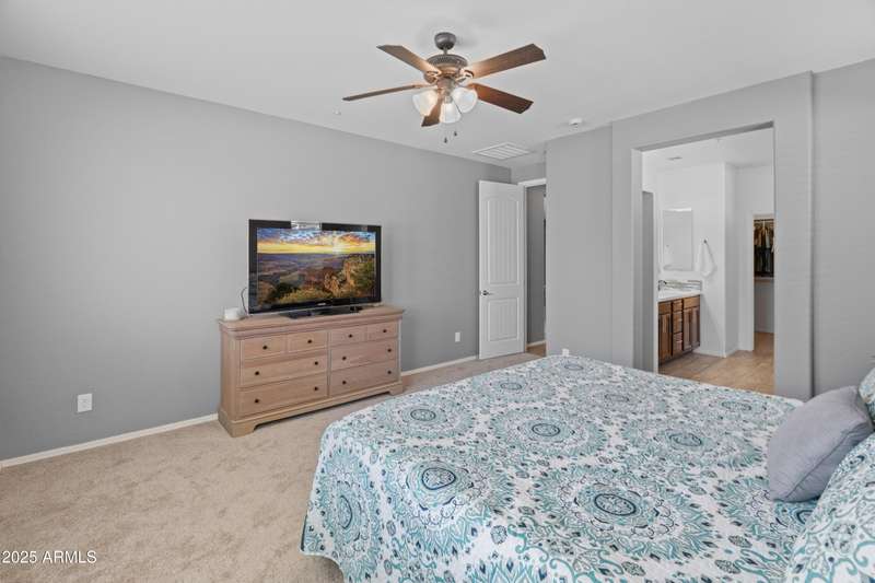 Beautiful 3-bedroom + den home on a premium deep lot in the sought after master planned community of Vistancia. No rear neighbors and single levels on both sides allow for privacy. Spacious great room concept with an island kitchen featuring 42'' cabinets, designer backsplash, under cabinet lighting, and granite countertops. New carpet in bedrooms (installed 7/25) plus freshly painted interior. Enjoy stunning mountain views from your backyard with an extended concrete patio; perfect for entertaining. Community amenities include 3 resort-style pools, tennis & pickleball courts, baseball field, gymnasium, clubhouse, scenic trails, and multiple parks. This home truly combines modern comfort, resort-style amenities, and natural beauty—all in one perfect package.