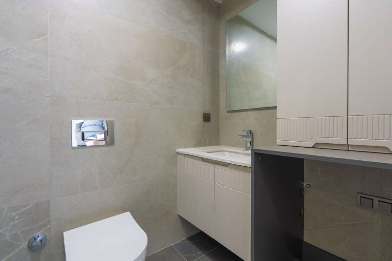 The flats are equipped with triple built-in sets, steel exterior doors, aluminum blinds, laminated floor coverings, floor ceilings, LED lighting, hallway coat raks, A-Class energy VRF A/Cs, and visual intercom systems. The bathrooms are furnished with high-quality ceramic tiles.