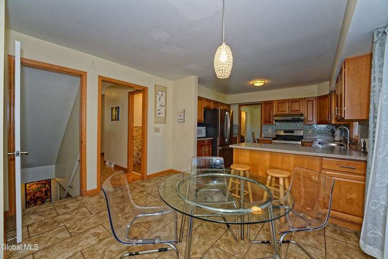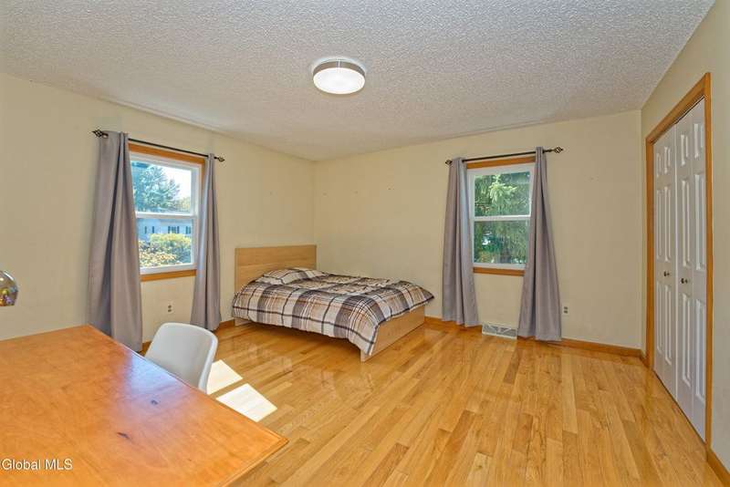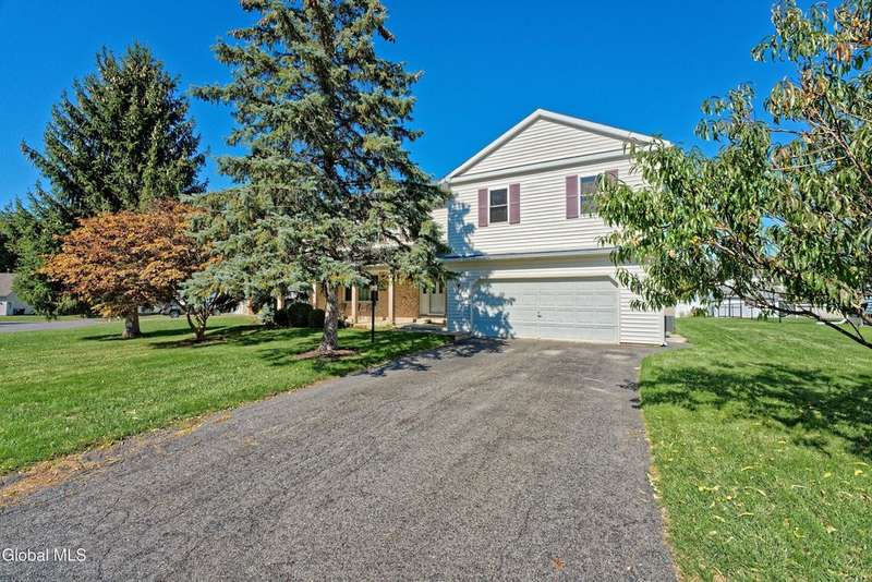 Exceptional 6-Bedroom Colonial in Sought-After North Colonie Schools.Welcome to this beautifully updated Colonial nestled on a peaceful cul-de-sac in the desirable North Colonie School District. This spacious home features six generously sized bedrooms, including two complete primary suites ? perfect for multigenerational living or guests.Enjoy solid hardwood floors throughout home, complemented by a tiled kitchen and updated baths. The inviting carpeted family room offers a wood-burning fireplace and elegant French doors leading to an oversized deck, ideal for entertaining or relaxing. A covered front porch provides a welcoming space for morning coffee or evening gatherings.The sun-filled yard offers plenty of space to play, garden, or unwind, including a vegetable garden tucked in the far corner. The finished basement adds valuable living and storage space, while two separate HVAC systems ensure year-round comfort and efficiency.Truly move-in ready, this exceptional home combines comfort, space, and style ? all in a prime location!