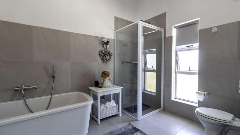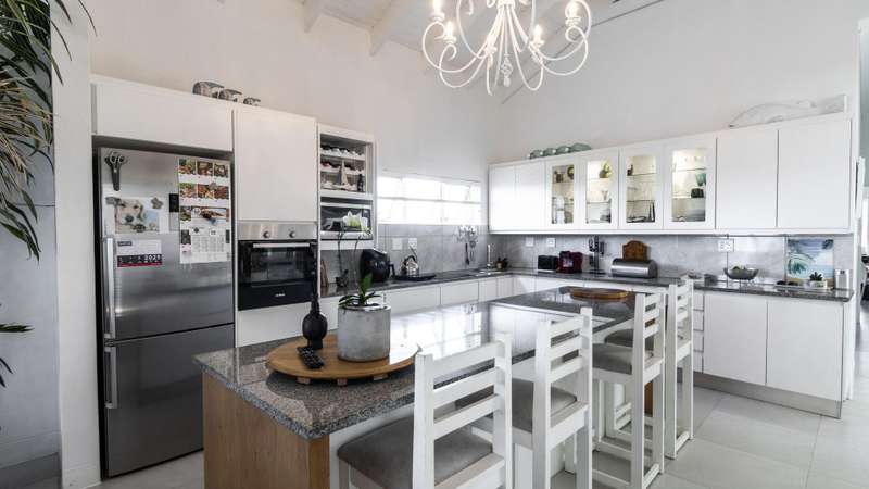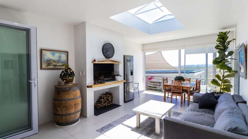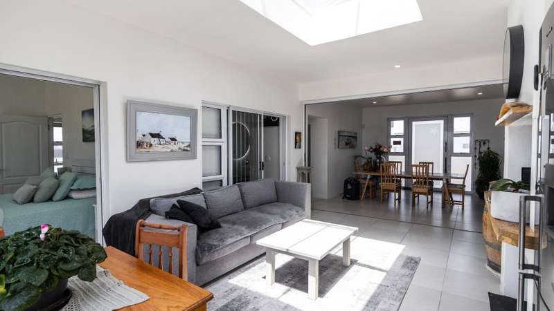 Nestled atop the scenic heights of Yzerfontein, this stunning home offers a unique blend of contemporary design and the natural beauty of the West Coast. Boasting breathtaking dual views, it overlooks the vast Atlantic Ocean in the front and serene farmland adorned with fynbos in the back. Whether you're seeking a permanent coastal escape or an exquisite weekend retreat, this home brings you closer to nature without sacrificing luxury. Designed to make the most of its exceptional surroundings, the home features expansive glass corners that erase the boundary between indoors and outdoors. This design allows natural light to flood the space, framing unobstructed views of the shifting tides. The result is a home that offers both openness and intimacy, capturing the essence of relaxed coastal living. The heart of the home is an open-plan living area that fosters an inviting atmosphere. The lounge, dining room, and gourmet kitchen flow seamlessly together, anchored by a large island with sleek black granite countertops and soft, neutral-toned cabinetry. A discreet scullery ensures the kitchen remains elegant and clutter-free, perfect for daily use or entertaining. At the center of the property is a sunlit, wind-sheltered braai area ?Çö a true entertainer's paradise. This private outdoor oasis extends the living spaces, with a transparent roof feature allowing natural light to pour in. Two guest bedrooms open directly onto the courtyard, enhancing the home's seamless indoor-outdoor connection. The main en-suite bedroom is a sanctuary of luxury, with a dramatic corner window offering panoramic ocean views. Its full bathroom embodies the home's modern design, creating a spa-like retreat. A versatile fourth room offers ample space for a study, creative studio, or additional bedroom, with a stylish guest powder room nearby for convenience. A freestanding double garage, discreetly located at the rear of the property, preserves uninterrupted ocean vistas and ensures practical access via a side driveway. Built just six years ago and impeccably maintained, this home is move-in ready and perfectly designed for those who appreciate sophisticated coastal living. More than just a residence, this Yzerfontein gem offers an unparalleled lifestyle, defined by tranquility, stunning scenery, and modern elegance. Don?ÇÖt miss the chance to call this extraordinary property home, where the beauty of the sea meets the land in perfect harmony.