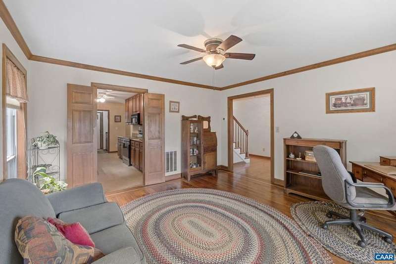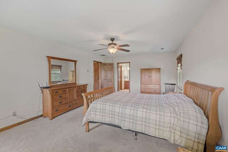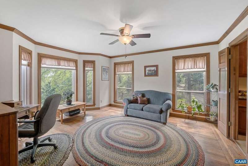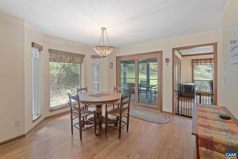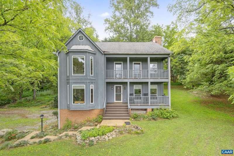 OPEN HOUSE SUNDAY 10/26 from 1-3 Mountains, birds, and nature abound! DOUBLE FRONT PORCHES with commanding vistas have space for rocking chairs. Enjoying morning coffee or evening glasses of wine has never been easier. PRIVACY in this BEAUTIFULLY MAINTAINED home, offering you peace of mind with major updates done: all Quest plumbing replaced, water heater (2022), Two HVAC systems including NEW MAIN LEVEL UNIT (2025), roof boots replaced, 2023 new range. Ceiling Fans in Every Room. Upgraded electrical outlets in the basement WORKSHOP. No worries here with reliable buried electric service. Enjoy outdoor living with many stone accents, a productive garden, and a RELAXING SCREEN PORCH. Just minutes away, 520-acre Mint Springs Park offers miles of trails, 8 acres of water, and stocked fishing and many amenities. Crozet Park features swimming, yoga, water aerobics, baseball and community festivals. King Family Vineyard and polo are nearby, with easy access to I-64 and Rt. 250 (10 minutes) and Charlottesville just 25 minutes away. 3 miles to heart of Crozet with a wonderful public library. Many Orchards, wineries, farmer markets nearby. Annual HOA fee is $350. Please DO NOT drive down the driveway without a confirmed appointment.,Cherry Cabinets,Granite Counter,Fireplace in Great Room