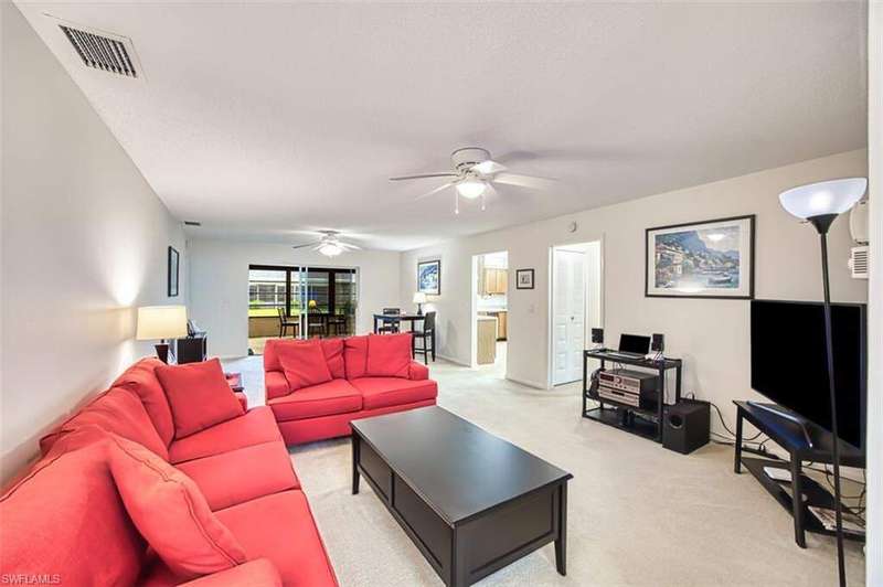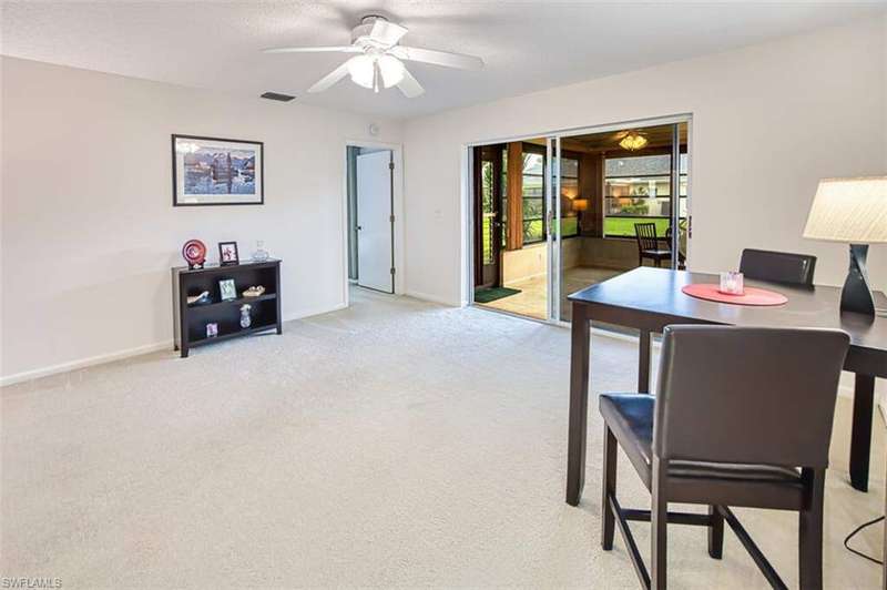 This METICULOUSLY-MAINTAINED "condo-villa" with a BRAND NEW ROOF is calling you home to Brandywine of Myerlee! This 55+ GOLF CART-FRIENDLY community has a GUARDED GATE, lots of amenities, and is a short drive to SWFL's finest beaches! Providing 2 bedrooms and 2 baths on a SPLIT FLOOR PLAN, spanning nearly 1600sqft, this SPACIOUS home also features a 2-CAR GARAGE and an EXPANISVE AIR-CONDITIONED LANAI, ensuring plenty of room for entertaining friends and family. The kitchen offers ample storage with warm WOOD cabinets and a matching pantry, as well as a generous countertop area and classic white appliances. NEUTRAL carpet, tile, and walls are a canvas begging for your creative, personal touches to make it truly your own. Brandywine offers a community pool, bocce, tennis, pickleball, billiards, library, exercise room, and more; plus, the perfect location positions it near tons of shopping, dining, and entertainment! GOLF MEMBERSHIPS or PAY-TO-PLAY at Myerlee G&CC available. No pets, sorry! Scoop us this rated "BEST VALUE BUY" before it's too late and start living your Florida dream life today!