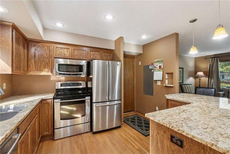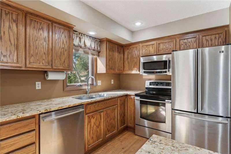 First time on the Market - One owner home that's move-in ready! Located in the highly regarded Mounds View School District, this well-cared-for home is move-in ready with thoughtful updates. The home has great curb appeal and is nestled in a quiet and established neighborhood with mature trees. You'll love the concrete driveway and beautiful landscaping from the moment you arrive. Inside, the home features hardwood floors and an updated kitchen complete with granit countertops, stainless steel appliances and refreshed cabinetry-perfect for cooking and entertaining. The upper level offers three bedrooms, including a primary suite with unique built-ins. On the lower level, relax in the cozy family room with a classic brick wood-burning fireplace. The fourth level is unfinished and offers great potential to finish it and add instant equity with more living space! Garage lovers, take note! This oversized, insulated and heated garage features a rear overhead door for convenient access to the backyard, ideal for yard work. The garage also includes a large air compressor with air lines plumbed throughout, making it a dream setup for DIYers or hobbyists. The fully fenced backyard is your private retreat, with a charming patio, lush perennials, and a quaint garden shed for all your outdoor needs. This is an estate and is being sold as-is. Don't miss your chance to own this well-loved home in a fantastic location!
