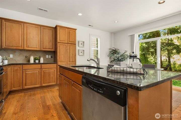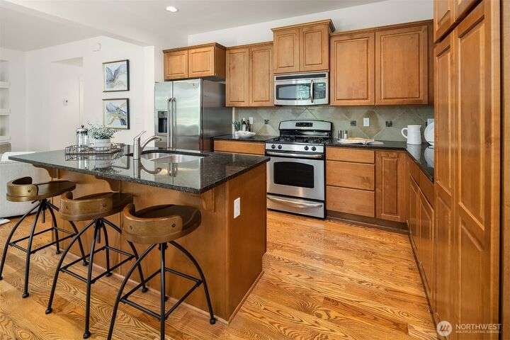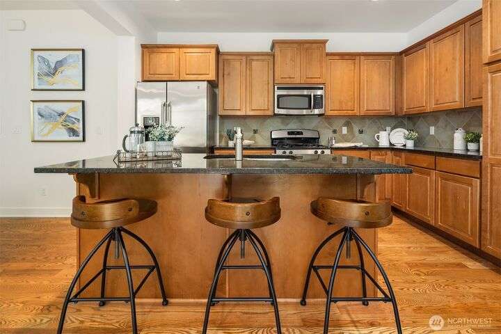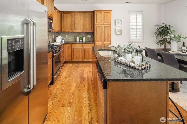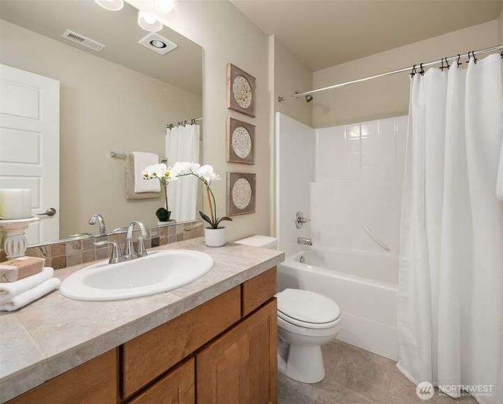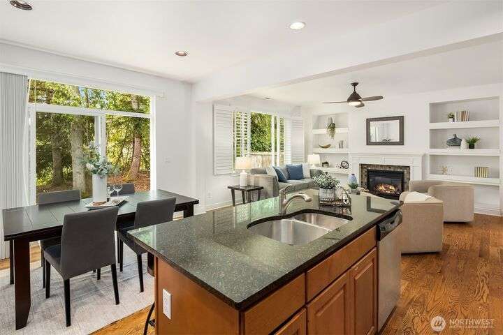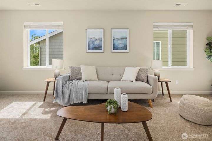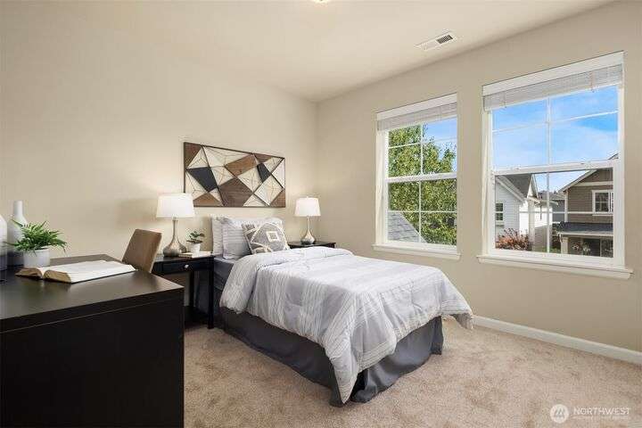 Well-maintained home in the highly sought Mill Creek Northpointe community. A covered front porch opens into a functional layout between kitchen, dining, & living spaces. The kitchen boasts an oversized island w/ bar seating & looks out to the backyard through sliding glass doors. The living room offers built-in shelving & large windows that fill that space w/ natural light. Upstairs, the primary suite has French doors, a 5pc bath & walk in closet. An additional bedroom, oversized bonus room (optional 3rd/4th bedrooms), laundry room, & full bath complete the upstairs. A private backyard perfect for entertaining. New interior paint & carpet. Prime location near Mill Creek Town Center, walking trails, Paine Field, I-5 & other amenities.