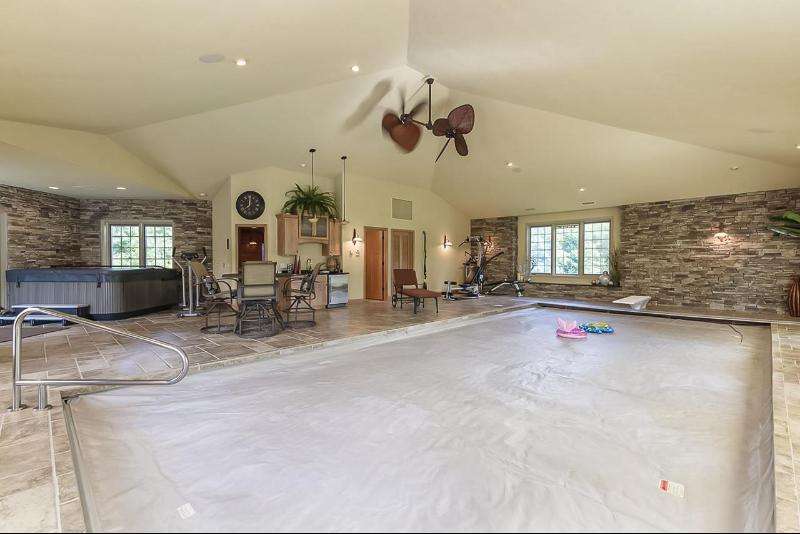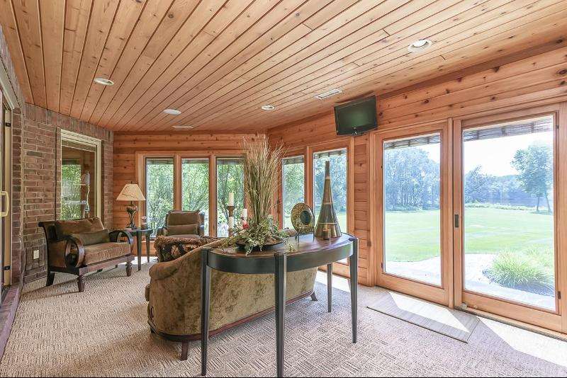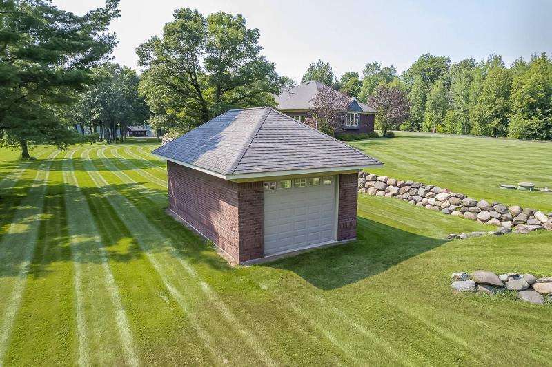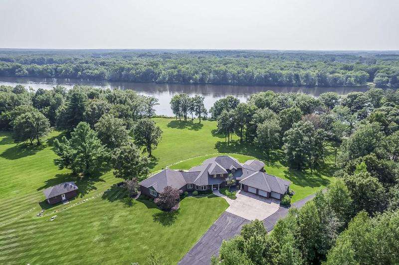 An Executive Estate with a gated entrance. This private property welcomes you with a 4,400-foot lighted driveway leading up to the luxurious home that boasts over 7,000 s.f. of living space on over 414 acres and a pond. Inside the home there is a spacious 3 car garage, in-floor radiant heat, Amish-honed wood floors, custom-made granite countertops, stone accents, and luxury finishes. The kitchen is a Chef's dream, featuring commercial-grade stainless steel appliances, a large island to provide additional seating, prep space, and walk-in pantry. With 3 total bedrooms and 3 full baths, 2 1/2 baths, there is plenty of room for all. The 34x20 master bedroom on the main level with panoramic views, other bedrooms on upper. Indoor pool, sauna and hot tub. Over the top lower level bar/entertainment space. Extra detached garage with 1,600 s.f. living quarters built in 2003. As well as a 480 s.f. cabin. Outdoor trails, private boat landing, views and exquisite peace and privacy with approximately 5,000 + Wisconsin River water frontage. The lot is mostly wooded with some wetlands, excellent for hunting and fishing. Amherst Fiber Optic 5G, internet is wired to the main shed. Land options available with home. Call today for a private Showing.