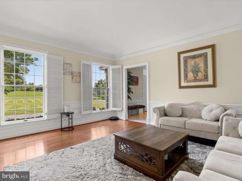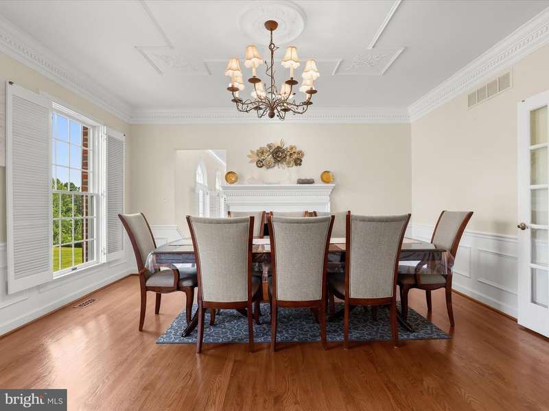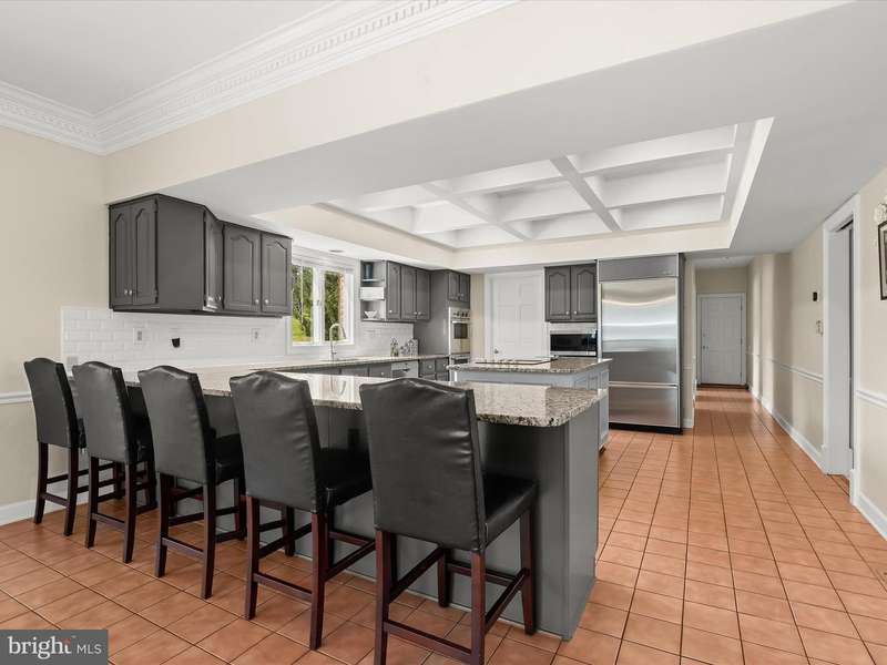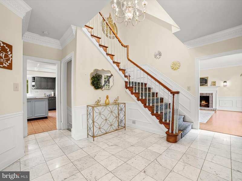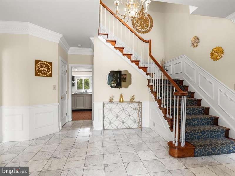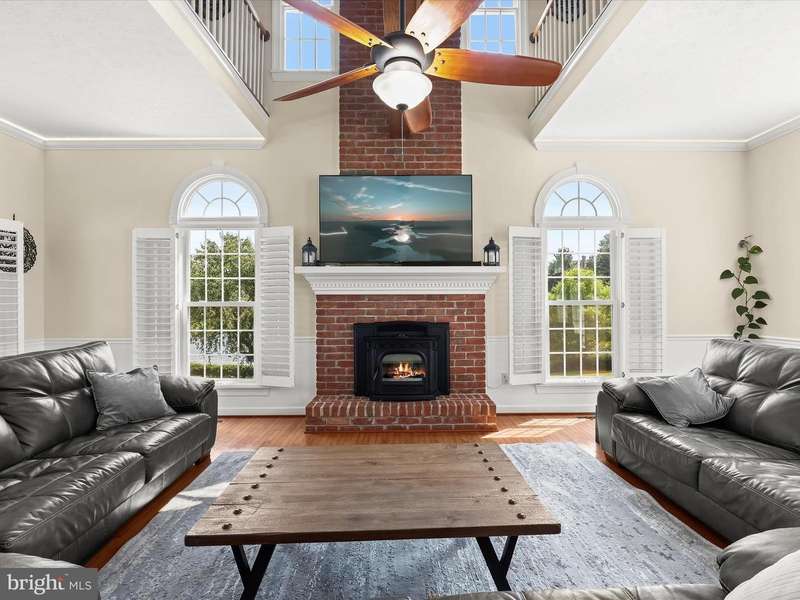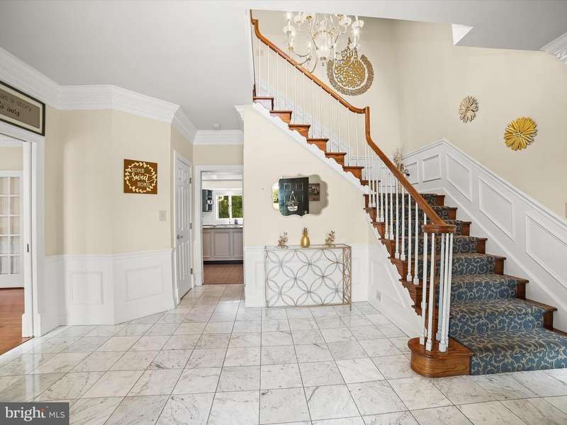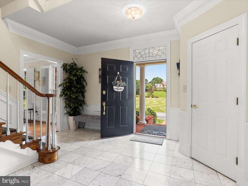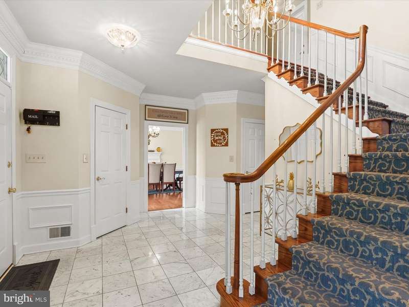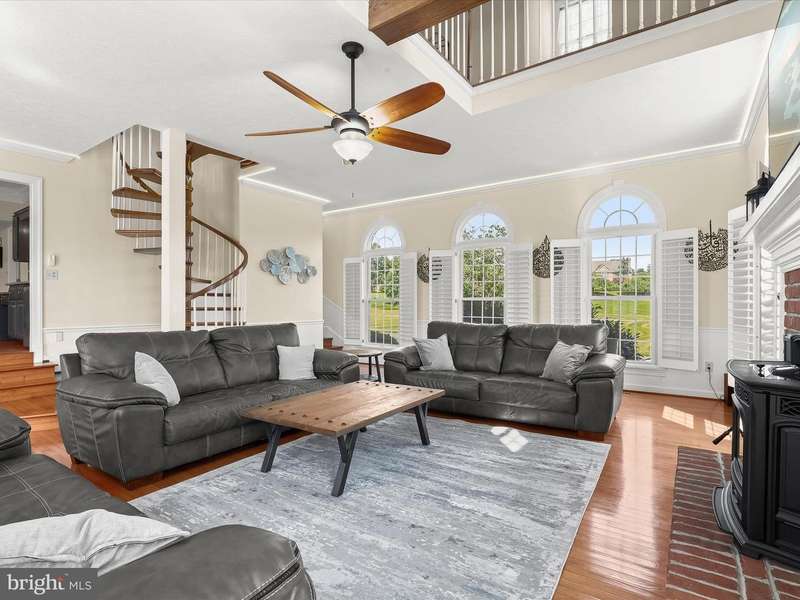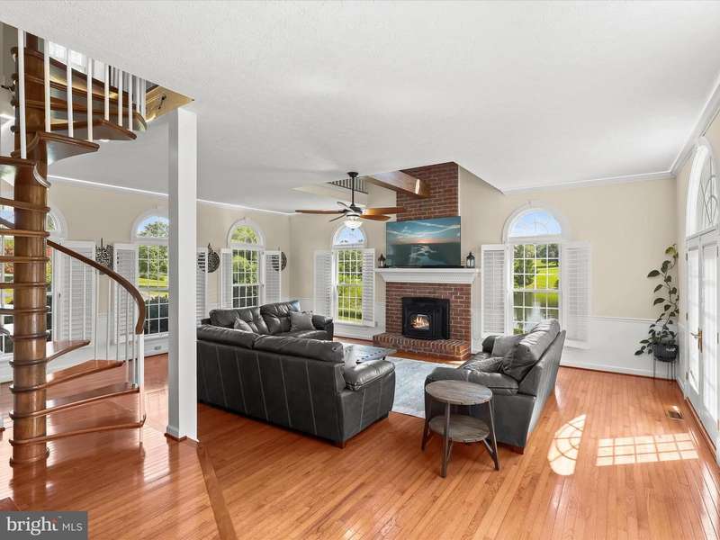 Welcome to this elegant waterfront residence where timeless design meets modern sophistication. Beautifully landscaped grounds and a stream-fed pond set the stage for a grand arrival. Stately columns and a manicured lawn frame the classic façade, offering a glimpse of the refined interiors within. Inside, the foyer is appointed with dentil crown molding and box wainscoting, custom millwork echoed throughout the main level. The formal living room offers warmth and style with hardwood floors, a wood-burning fireplace, plantation shutters, and sunlit windows. The adjacent formal dining room features another fireplace, detailed millwork, hardwood floors, and a ceiling medallion, all overlooking the lush front lawn. Designed for entertaining, the chef's kitchen is outfitted with granite countertops, a KitchenAid island cooktop, peninsula island, double Thermador ovens, Sub-Zero refrigerator/freezer, and a second prep sink in the breakfast area. Just off the kitchen, step into the screened-in porch-an ideal extension of the space and a peaceful spot for morning coffee or al fresco dining. From there, access the expansive 1,000 sq ft deck with integrated propane grill and outdoor kitchen, all overlooking tranquil pond views. The dramatic, two-story family room impresses with exposed beams, a pellet stove, and Palladian windows that frame the scenery. A custom spiral staircase leads to a loft library, perfect as an executive office with built-in shelving and workspace. Upstairs, the home's sleeping quarters are thoughtfully arranged across two upper levels to provide both comfort and privacy. The second floor hosts the luxurious primary suite along with three additional bedrooms and a full bath, while the third floor offers two more spacious bedrooms and another full bath, ideal for guests, extended family, or a private retreat. The primary suite is a true sanctuary, complete with its own fireplace, a serene sitting room, two walk-in closets, and a separate dressing area. The en suite bath is spa-inspired, featuring a soaking tub, custom vanity with built-in shelving, and a personal cedar wood closet. Each of the three secondary bedrooms on this level offers generous space, natural light, and convenient access to the shared bath. On the top level, two additional bedrooms and a full bath provide excellent flexibility for guest accommodations, an au pair suite, or creative studio space. The finished lower level expands your living space with a large recreation room featuring a sleek electric fireplace and a step-down game room with a full-size bar, perfect for billiards, ping pong, or movie nights. Function meets flexibility in the oversized three-car garage, which includes a dedicated workshop area and ample storage, ideal for car enthusiasts, hobbyists, or anyone in need of extra space. Set on over 3 acres, the grounds include a lush lawn, newly planted fruit trees, and access to the scenic, stream-fed community pond, perfect for fishing or quiet reflection. Pond privileges are included. Recent upgrades include two new HVAC units with 10-year warranties (2025), full interior paint (2023), new carpet (2022), water heater (2019), and a water filtration system (2018). With its luxurious updates, versatile layout, and serene setting just minutes from Baltimore and major commuter routes, this extraordinary estate offers the best of refined country living with everyday convenience. Note: Select interior photos have been virtually staged.