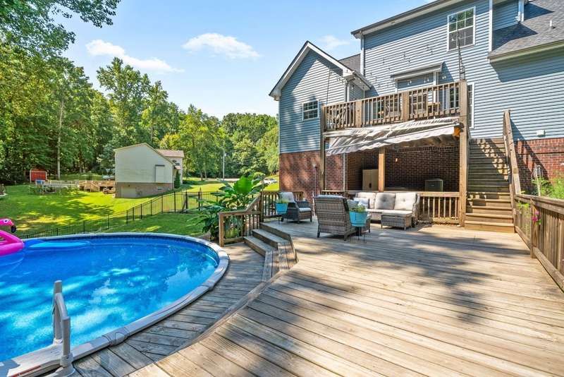 Move-in ready and instant equity, priced to sell $9,100 below appraisal (Appraised at $465,000 in August 2025)! In SANGO, this impeccably-maintained 2,226 sq ft home on a.62-acre cul-de-sac lot with no HOA, no city taxes, and no backyard neighbors. Offering an $8,000 buyer concession. Built in 2019, this move-in ready 3-bedroom (possible 4th bedroom bonus room), 3.5-bath home features a bright living room, formal dining area, and a modern kitchen with granite countertops, stainless steel appliances, and a new fridge/ disposal (2024). Primary suite on main level. Upstairs offers 2 large bedrooms, flex/bonus space, and ample storage. Fully finished basement includes a full bath and large closet - ideal for a guest suite, home office, or media room. Enjoy the gorgeous tree-lined backyard retreat, with a fully fenced backyard, an above-ground pool, expansive deck, and patio-perfect for gatherings, grilling, or letting kids and pets play safely- perfect for relaxing or entertaining. Located just 2.5 miles from I-24, and minutes from Fort Campbell, shopping, dining, and Nashville, this home offers both convenience and lifestyle.
