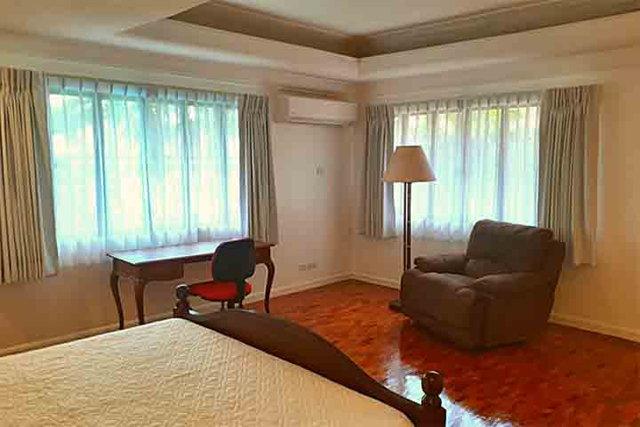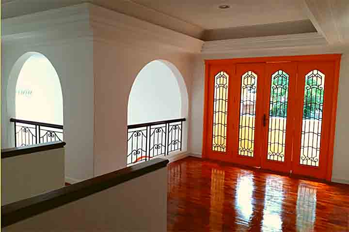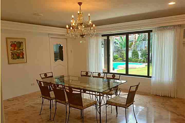 Fully furnished and newly renovated, this property has four bedrooms all with ensuite T&B and walk-in closets. The second floor has a balcony. This property has a four-car garage, a well-manicured and landscaped garden, a high-ceilinged living room, a den with its own T&B, storage room, pantry, dining room, veranda, gourmet kitchen, dirty kitchen, swimming pool, Jacuzzi, and an additional T&B in the pool area, a drying area, and a maid's room and driver's room with their own T&B.