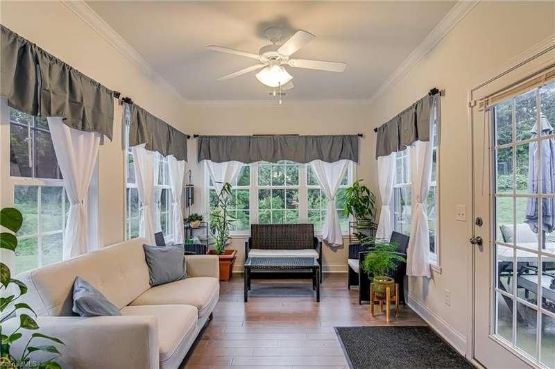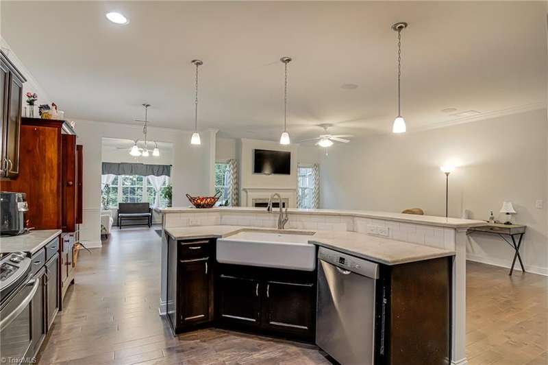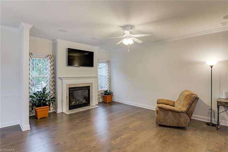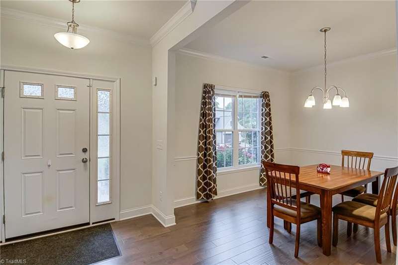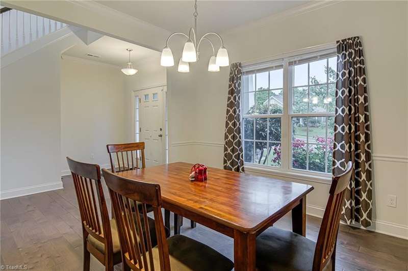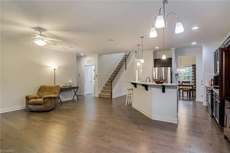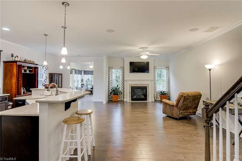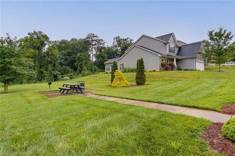 This lovely 4BR/2.5BA home was designed for easy living in a great location! The open floor plan with living room and kitchen is perfect for entertaining and the formal dining room enhances your options. The kitchen has lots of cabinets and a large island allowing for work and serving space. The home offers builder upgrades including slate appliances, farmhouse sink, and convenient pot drawers. The inviting sunroom welcomes you to relax with its views of a tranquil wooded area. A spacious main-level primary bedroom has an en-suite bath with double sink vanity, tile shower, and large walk-in closet. The main floor was built to accommodate a wheel chair. Three additional bedrooms and bath are upstairs, along with a huge loft area that provides versatile living space. Meticulous landscaping with beautiful plantings enhance this wonderful home. Convenient to shopping, WFU, and downtown W-S! With acceptable offer, seller is offering $8000 for paint, flooring or a rate buydown.