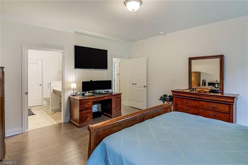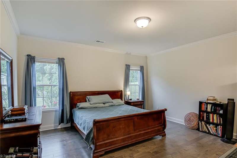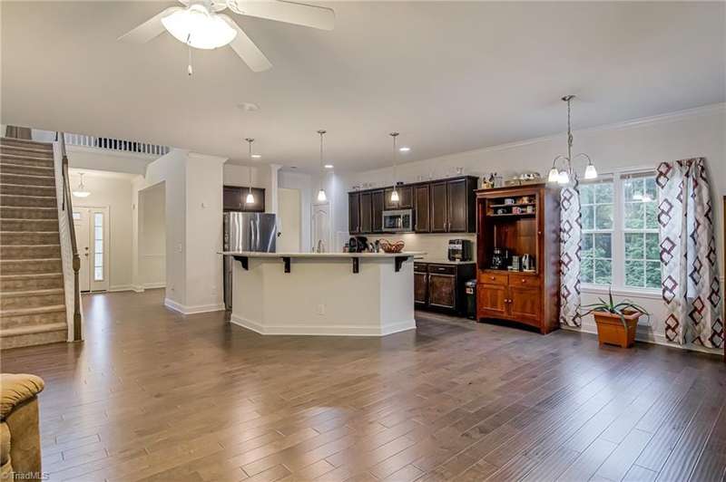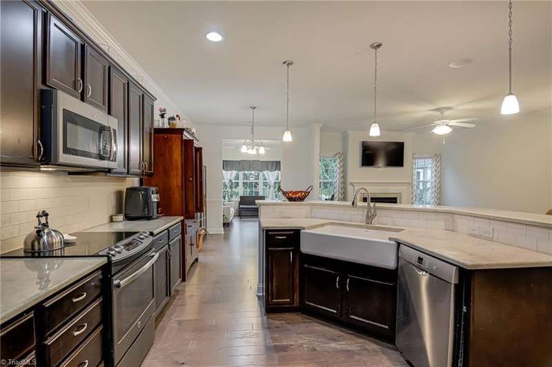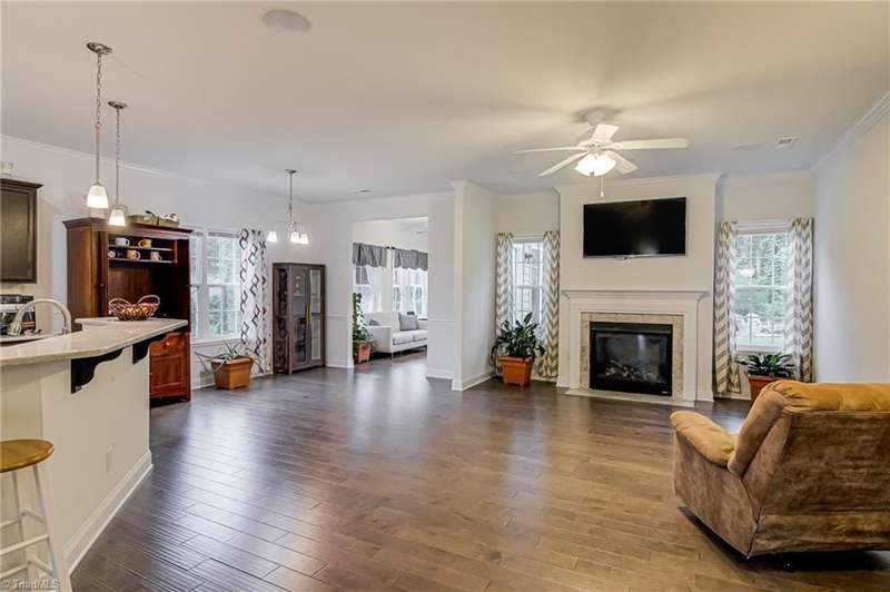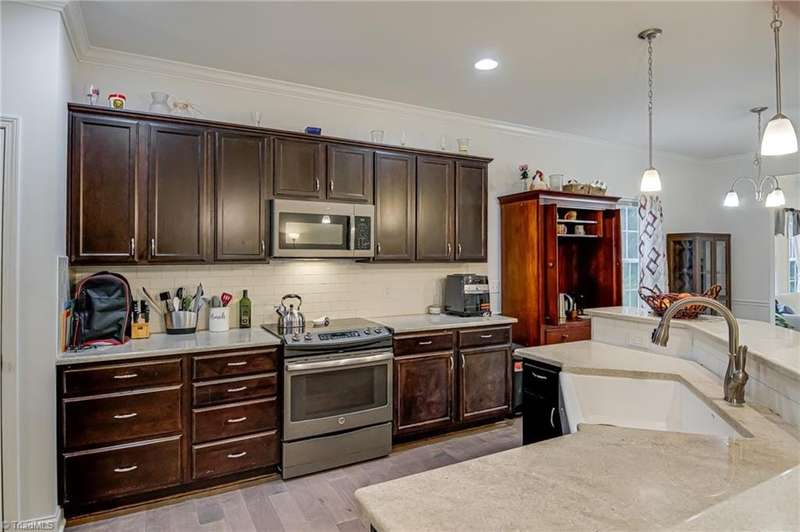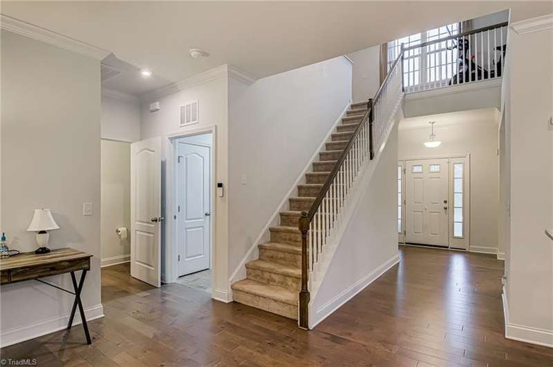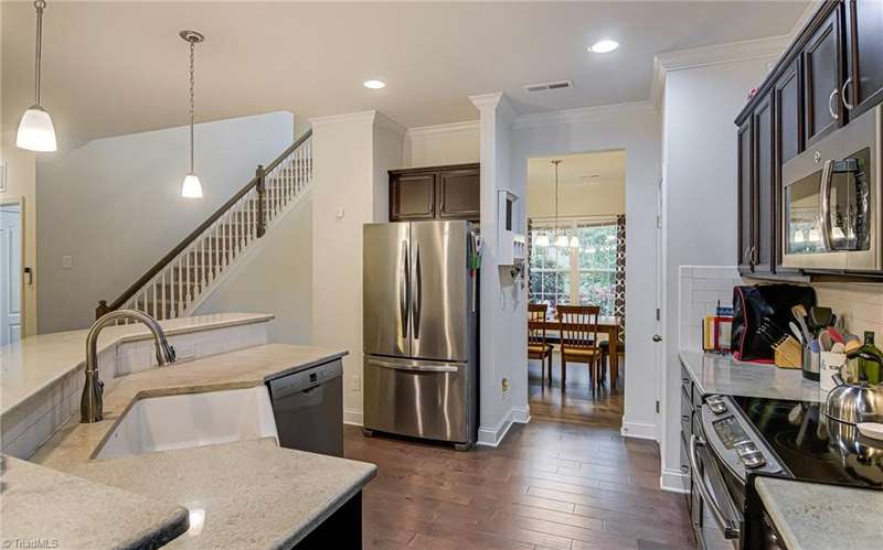This lovely 4BR/2.5BA home was designed for easy living in a great location! The open floor plan with living room and kitchen is perfect for entertaining and the formal dining room enhances your options. The kitchen has lots of cabinets and a large island allowing for work and serving space. The home offers builder upgrades including slate appliances, farmhouse sink, and convenient pot drawers. The inviting sunroom welcomes you to relax with its views of a tranquil wooded area. A spacious main-level primary bedroom has an en-suite bath with double sink vanity, tile shower, and large walk-in closet. The main floor was built to accommodate a wheel chair. Three additional bedrooms and bath are upstairs, along with a huge loft area that provides versatile living space. Meticulous landscaping with beautiful plantings enhance this wonderful home. Convenient to shopping, WFU, and downtown W-S! With acceptable offer, seller is offering $8000 for paint, flooring or a rate buydown.