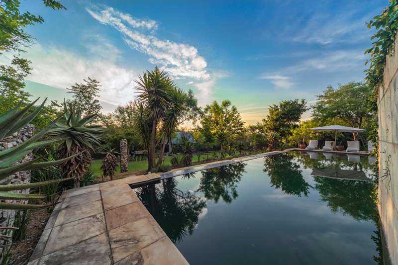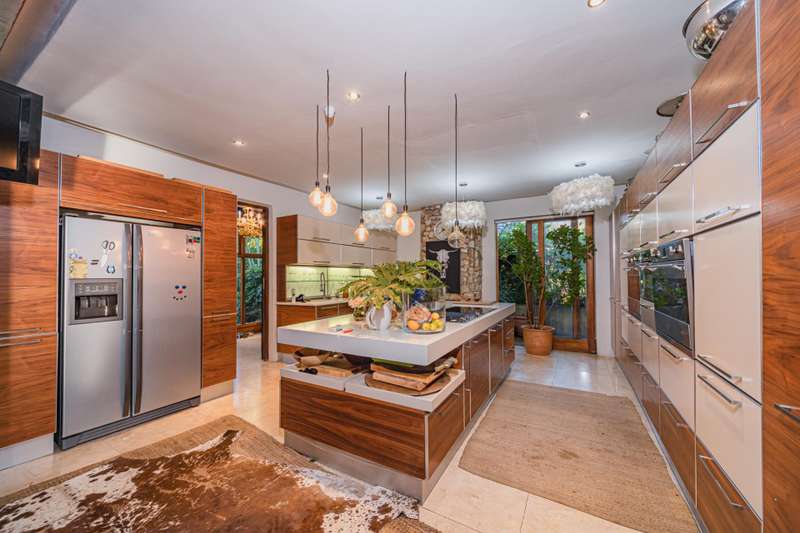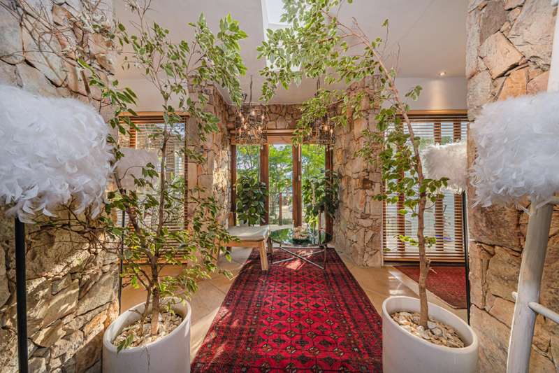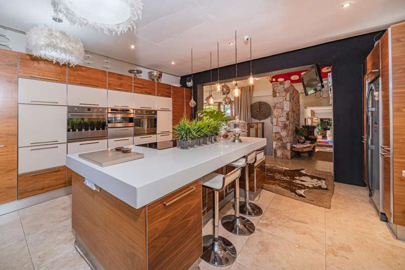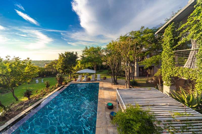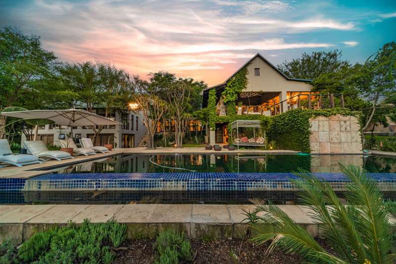A Sanctuary of Tranquility and Luxury in an Exclusive Boomed Enclave Tucked away within an ultra-exclusive, boomed-off enclave, this architectural masterpiece is one of only eight distinguished residences on a coveted, tree-lined street. A seamless blend of refined luxury and natural serenity, this estate sprawls over 10,000 sqm of lush landscaped gardens, with 1940sqm under roof, offering an unparalleled retreat for the discerning connoisseur. From the moment you arrive, you are enveloped in a world where sophistication meets nature. The residence boasts six exquisite bedrooms and five lavish bathrooms, complemented by a scenic outdoor bath and two invigorating outdoor showers, allowing you to immerse yourself in the beauty of the elements. An additional guest toilet ensures effortless convenience for both residents and visitors. Expansive formal and casual dining areas invite refined gatherings, while three outdoor dining spaces provide al fresco experiences under dappled sunlight or starlit skies. The separate sun lounge daybed area is a serene escape for quiet reflection, cocooned in natures embrace. Designed for both grandeur and intimacy, the home features two gourmet kitchens, fully equipped to cater to every culinary whim. Two formal lounges set the stage for sophisticated entertaining, while a cozy TV lounge offers a relaxed retreat. Plus a movie theatre. The bar area provides a chic setting for cocktail soir??es. Wine cellar plus a dedicated gym ensures wellness is seamlessly integrated into daily life. Step outside into a world of leisure and entertainment. Two sparkling swimming pools invite refreshing dips, while an outdoor boma provides a magical fireside setting beneath the African sky. The sun lounge daybed and reading area encourage moments of relaxation, while the outdoor movie theatre transforms evenings into unforgettable cinematic experiences. A show-stopping, massive beach bar and dining area stands as the heart of outdoor entertainment, where sunset cocktails and lively gatherings unfold in a setting reminiscent of a luxury resort. A sauna offers a spa-like retreat, ensuring ultimate relaxation. The estate is a sanctuary not only for its residents but also for its resident wildlife. Two graceful springbok, a duiker, and various tortoises roam freely, adding to the property?ÇÖs enchanting, safari-like ambiance. This home is not just about indulgence?ó?Ç?öit is designed for effortless living. The four-car garage and two additional carports provide ample parking, while a workshop, laundry, and scullery ensure seamless functionality. Two staff quarters with their own garden and lounge. For the little ones, a Wendy house with a charming patio creates a delightful play space, blending seamlessly with the estates natural beauty. This is more than just a home; it is an unrivaled sanctuary of luxury, designed to inspire, rejuvenate, and elevate every moment. Whether basking in the tranquility of the gardens, indulging in world-class entertainment, or simply soaking in the beauty of the surroundings, this estate offers a lifestyle that is as exclusive as it is extraordinary. Enquire now for a private viewing and experience a residence where opulence meets serenity in perfect harmony.