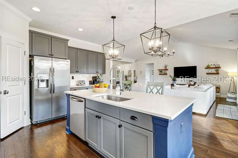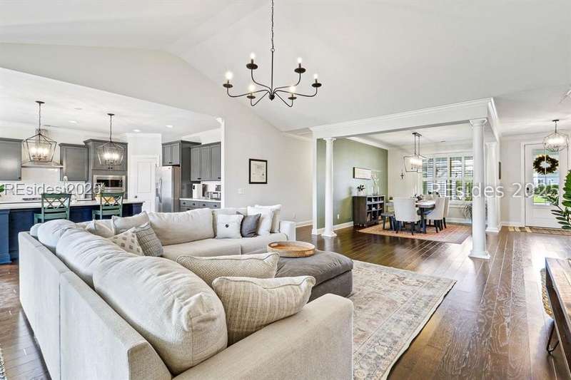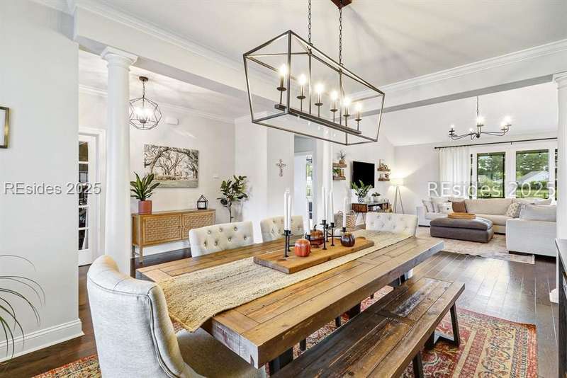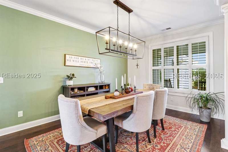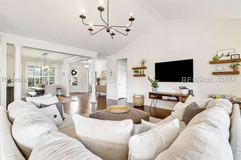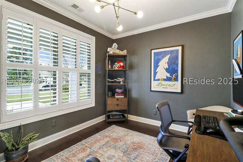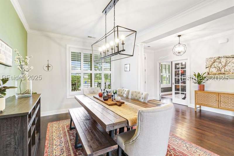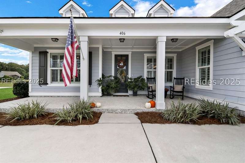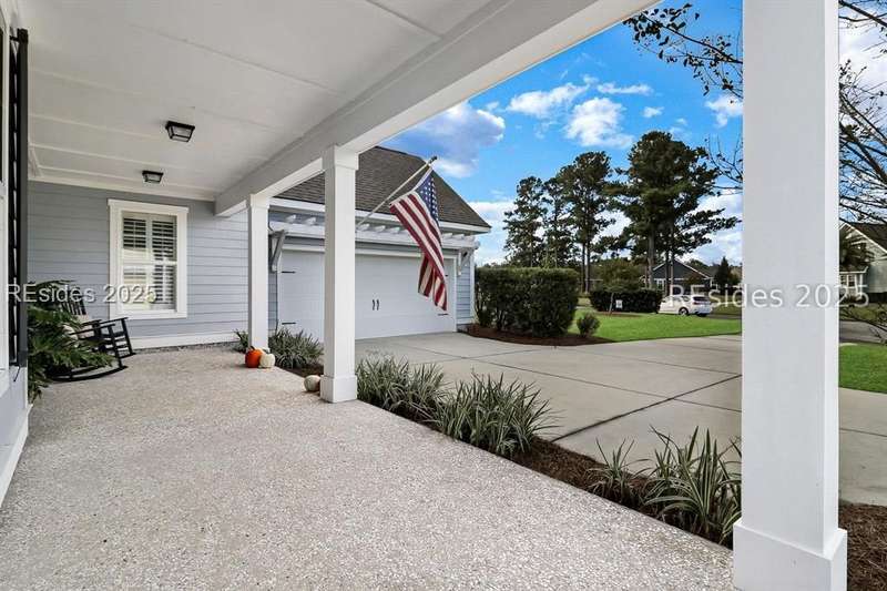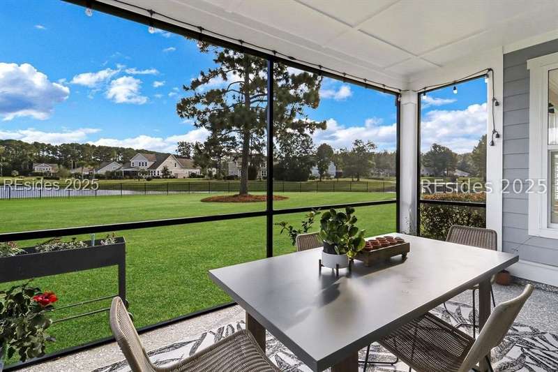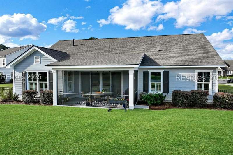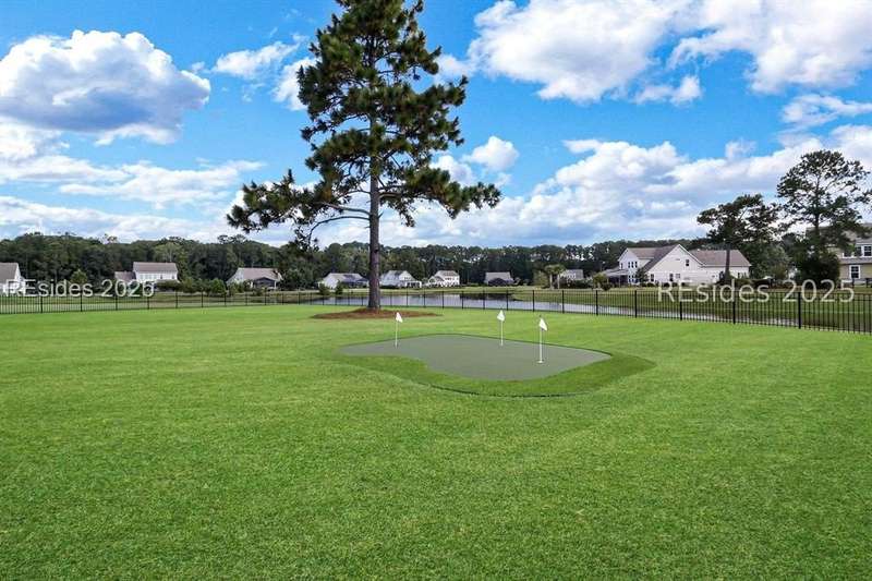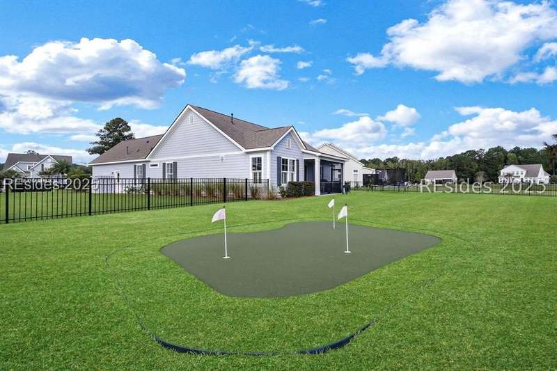 Welcome to this beautifully updated 3-bedroom, 2-bathroom home with a dedicated office, set on a private cul-de-sac in the sought-after gated community of May River Preserve. Offering 2,229 square feet of thoughtfully designed, single-level living on a generous .61-acre lot, this home perfectly blends comfort, function, and Lowcountry charm. The heart of the home is the gourmet kitchen, featuring a natural gas range, a large center island ideal for quick meals or entertaining, and a separate dining room for more formal gatherings. The open-concept living area is filled with natural light and showcases expansive sliding glass doors that open to a screened porch, where you can relax and take in serene lagoon views. The popular split-floor plan places the spacious primary suite on one side of the home for privacy, while two additional bedrooms and a full bath are tucked on the other, creating a layout that works well for families and guests alike. A dedicated office with French doors provides the perfect space for remote work, study, or creative projects. Practicality meets style in the oversized laundry room, which includes a built-in mudroom entry from the two-car garage ideal for staying organized after busy days of activities. Outdoor living is a highlight of this property, with a large fenced backyard that offers protection without sacrificing the open water views. A private putting green adds a fun and unique feature for golf lovers or for entertaining guests, while the spacious lot provides plenty of room for play or gardening. Recent upgrades include new all-natural wool carpet in the bedrooms, custom wood plantation shutters, a whole-home water filtration system, and ceiling-mounted garage storage racks for maximizing space. Living in May River Preserve also means enjoying access to community amenities such as a clubhouse, pool, and gated entry, all while being conveniently located near New Riversides shops, dining, and the popular New Riverside Barn Park. This home offers the perfect balance of modern updates, functional design, and an inviting lifestyle in one of Blufftons most desirable neighborhoods.
