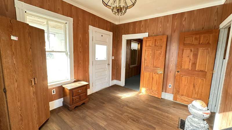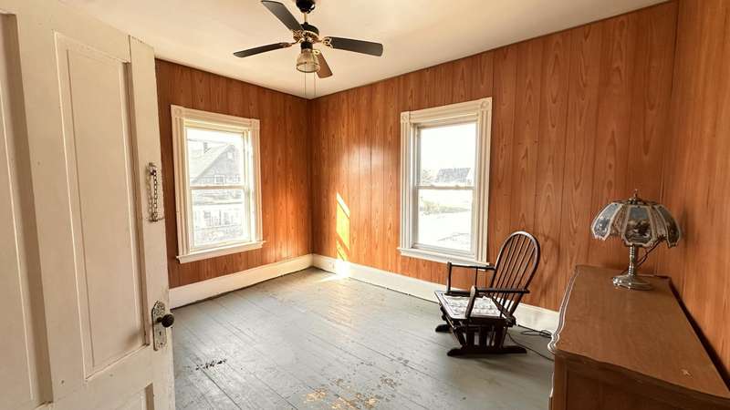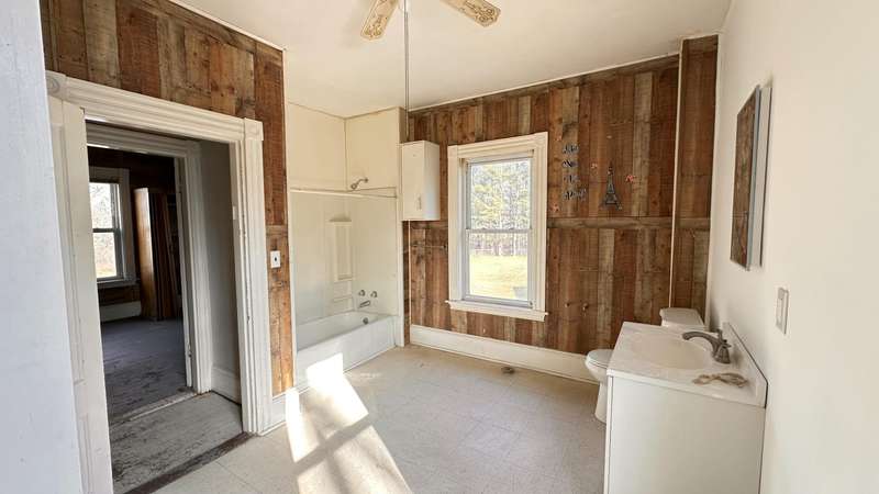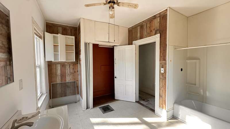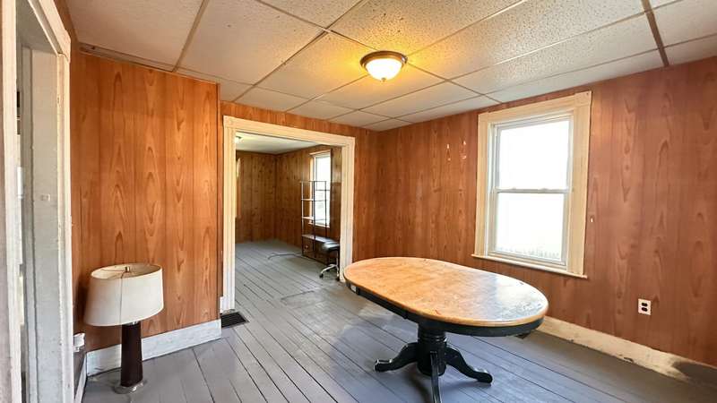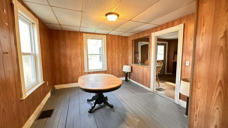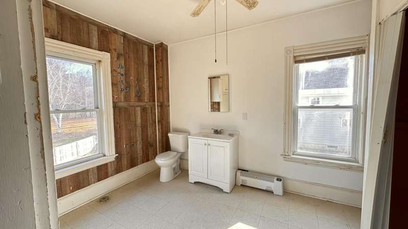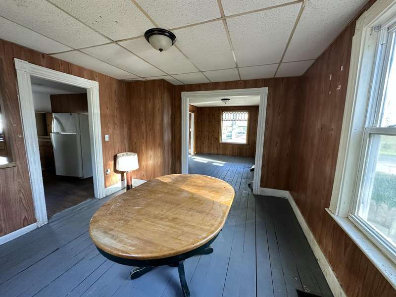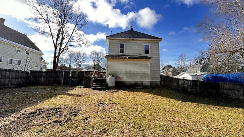 Updated kitchen layout with new range on the way! Charming Traditional 4-Square Home in Need of a Little Love. Tucked away on a quiet side street in the small town of Milo, this classic 3-bedroom, 2-bath home is full of potential. With its iconic slate roof and glassed-in front porch, this solid, square house is waiting for someone to make it beautiful again. Step inside to a welcoming foyer that opens up to a spacious living room and a formal dining room featuring a breakfast bar that connects seamlessly to the kitchen—perfect for hosting or casual family meals. A full bath on the first floor, complete with laundry hookups, adds everyday convenience. Upstairs, you'll find two generously sized bedrooms, plus a cozier third room that would make an ideal home office or nursery. A roomy full bath completes the second floor. The level, fenced-in backyard is a blank canvas—great for a veggie garden, swing set, or firepit for evening gatherings under the stars. This home has great bones and a warm layout—bring your ideas and make it your own!