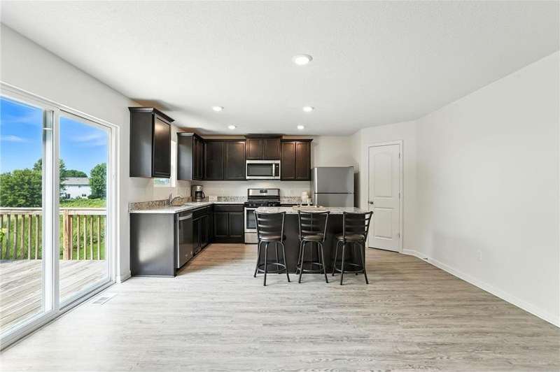 Beautiful 2021-built home with 4 bedrooms and 3 baths on a scenic lot with wooded backyard and pond views. The open kitchen boasts granite counters, quality cabinetry, pantry, and Whirlpool stainless steel appliances. Main level features a spacious owner suite with full bath and walk-in closet, plus an additional bedroom and guest bath. Walk-out lower level includes a family room, 2 bedrooms, and full bath, with a large unfinished area ready for a media room, hobby area or more. Oversized garage adds extra space for vehicles and storage. Move-in ready retreat with modern finishes and a peaceful setting!