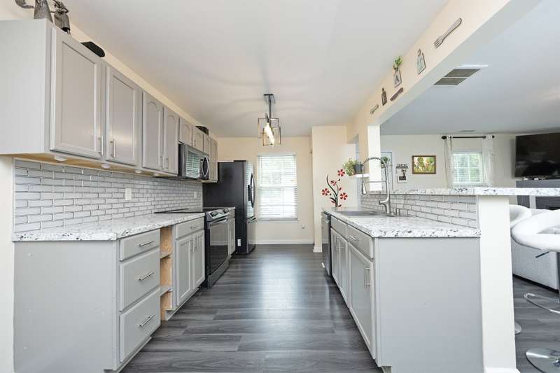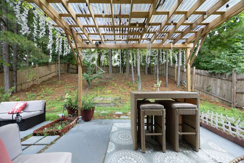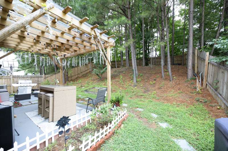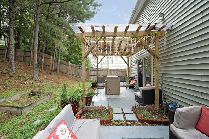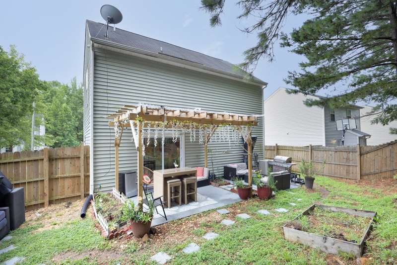 Welcome to 2027 Buffalo Way an updated and well-cared-for home in the desirable Landon Farms subdivision! This charming 3-bedroom, 1.5-bath home blends modern updates with functional living. Step inside to find luxury vinyl plank flooring throughout, smooth ceilings (popcorn removed!), updated lighting, and a remodeled full bath completed in 2024. The extended kitchen features an added bar for casual dining, expanded pantry space, and a convenient layout that flows perfectly for everyday living and entertaining. A new sliding door leads to a private, wooded backyard oasis with a beautiful pergola?ideal for relaxing or hosting guests or grilling out. Additional upgrades include a fully fenced yard, updated toilets, and custom closet organizers in all bedrooms, maximizing space and storage.Located just minutes from downtown Durham, Duke, RTP, RDU, and major highways, this home is move-in ready and positioned in one of the most convenient locations in the Triangle.