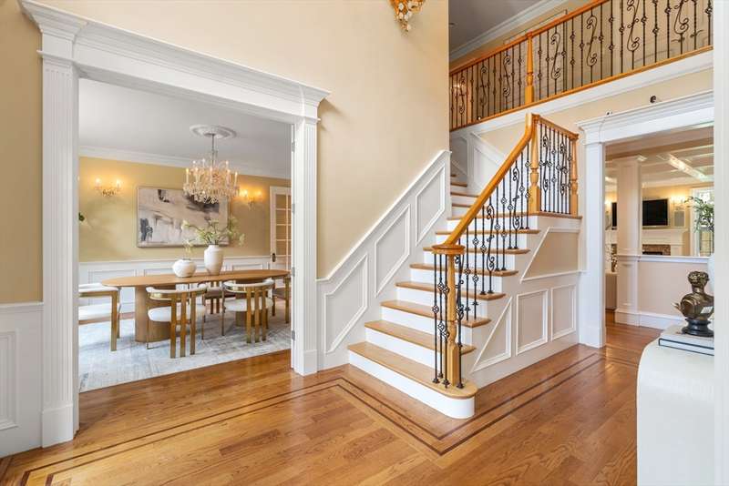 Location ! Location! Location! This stunning Colonial effortlessly blends timeless architecture w/ modern luxury, offering exceptional living space.Main level showcases a gracious family room w/ beamed ceilings & a fireplace, a chef s kitchen w/ a butler s pantry & a sun-drenched breakfast area that opens to a patio & a professionally landscaped, fenced-in backyard ideal for indoor-outdoor entertaining. A formal living room, dining room, ensuite bedroom, powder room & a mudroom w/ direct access to a 2 car garage complete this level. 2nd floor the expansive primary suite features a spa-like bathroom, a walk-in closet & a serene sitting area/ office. Spacious bedrooms w/ en suite baths & a well-designed Jack& Jill bath. Lower level adds exceptional versatility with a gym, wet bar, playroom, bedroom suite, & abundant storage ideal for multigenerational living. Bonus attic offers additional space endless potential for expansion or customization. A true gem in desirable area!