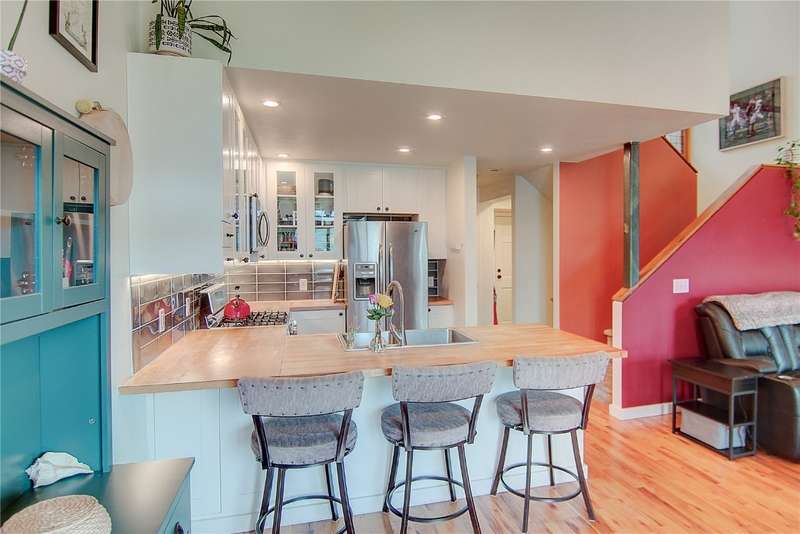 Welcome to 537 Mountain Vista Circle, a beautifully upgraded townhome in one of Steamboat’s most sought-after locals’ neighborhoods. This spacious two-bedroom, two-bath residence offers a thoughtful layout with vaulted ceilings, abundant natural light, and real wood floors, baseboards, and trim throughout. The great room is the heart of the home, anchored by a cozy gas fireplace and framed by large windows that bring the outside in. The kitchen features butcher-block countertops, stainless steel appliances, and newer cabinetry—updated with care to balance style and functionality. Upstairs, you'll find a large second bedroom, a full bathroom, and a versatile loft that works perfectly as a home office, fitness space, or guest area. The primary suite is located on the lower level and offers excellent privacy, complete with a walk-in closet, remodeled en suite bathroom with heated floors and double vanities, and a walk-out patio with peaceful views toward Emerald Mountain. Additional highlights include an attached one-car garage, excellent storage, forced-air heating, and a covered deck off the great room for enjoying evening light. Low HOA dues, access to the free bus line, and proximity to Rita Valentine Park make day-to-day living easy and connected. Ideal as a full-time residence or a low-maintenance second home, this townhome blends comfort, location, and quality upgrades in a neighborhood locals truly love.