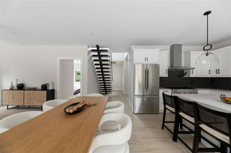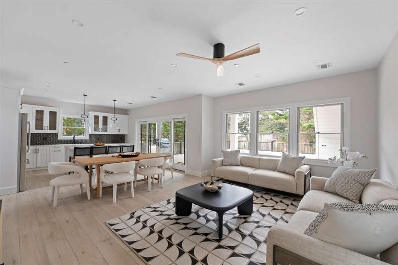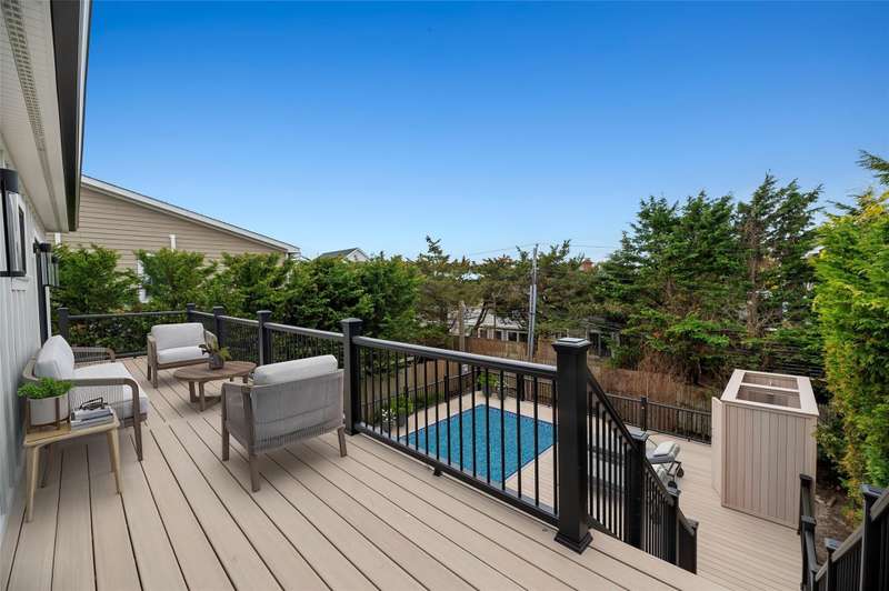 This stunning, newly constructed home boasts impeccable craftsmanship, prime location, design & comfort. Ideally located just 6 homes from the scenic and peaceful sandy beach of the Fire Island seashore. The main level features an open-concept layout with a gourmet kitchen equipped with Thermador appliances, expansive island with seating for 6 that seamlessly flows into the dining, living room & den area with full bath. Kitchen is also lined with sliding glass doors leading to the expansive outdoor deck where you can enjoy the heated pool, outdoor shower with changing area, and “privacy-providing” mature landscaping that creates the ultimate space for lounging and entertaining. The home offers 4 bedrooms and 2 full baths upstairs, two of the bedrooms, open to a private slider leading to a beautiful top deck. From there, you can also access the lower deck and pool area. Home is handicapped accessible, ensuring comfort and convenience for all. Enjoy the beautiful, year round living in this stunning space! Restaurants, shopping, Community events throughout the summer & docking that is offered to residents first (please check availability) - ALL just PERFECTLY situated in the vibrant village of Ocean Beach, Fire Island!
