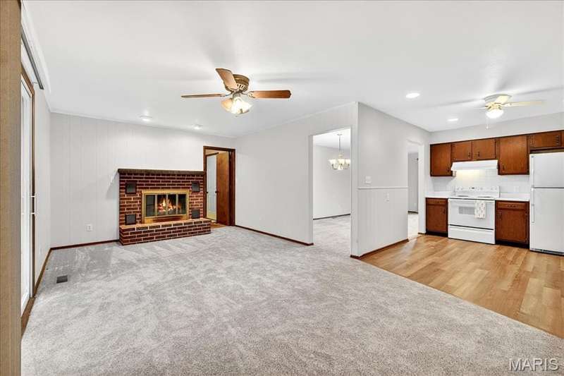 Charming Ranch Home on a Corner lot. Welcome to this inviting 3-bedroom, 2-bath ranch nestled in walkable neighborhood in Washington. Offering comfort, convenience, and plenty of living space, this home is perfect for both everyday living and entertaining.Step inside to find a bright living room, a formal dining room, and a cozy family room featuring a wood-burning fireplace?the perfect spot to relax on fall/winter evenings. Sliding door off the family room leading to the backyard .The spacious kitchen is equipped with white appliances, ample cabinetry, and new flooring (2025). New carpet throughout main level was also replaced in 2025.The primary suite offers a private retreat with an en suite bathroom and his-and-hers closets. Two additional bedrooms and a second full bathroom provide plenty of space for family, guests, or a home office. Spacious full basement with lots of potential just waiting to be finished. Easy access to downtown Washington and the riverfront and a short drive to many of the local wineries.