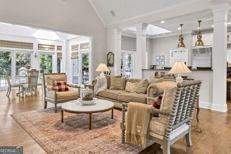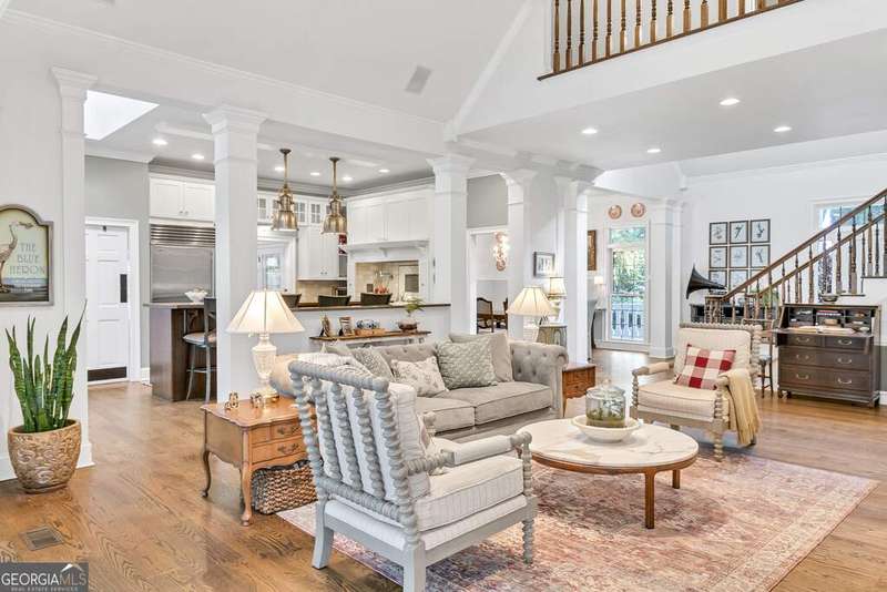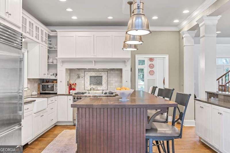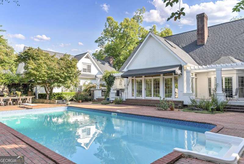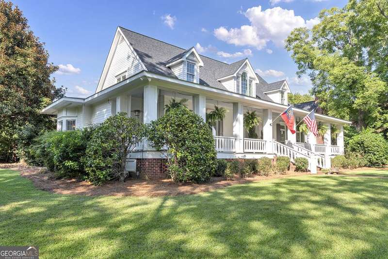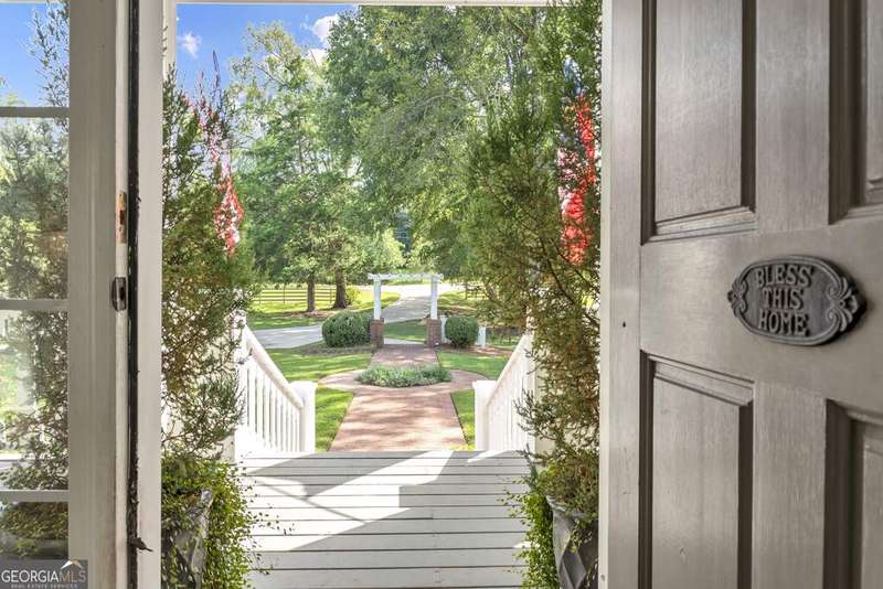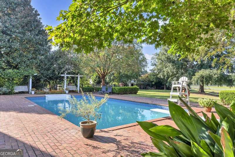 Discover your private farm oasis on 12 acres of land, perfect for playing & living. This charming but expansive farmhouse is surrounded by gardens, patios, and space to roam, all enclosed by a classic white picket fence. Enjoy the sprawling front porch and multiple outdoor amenities, including a pickleball court, pool, outdoor kitchen & fireplace, and entertaining patio. Additional features include a large workshop, chicken coop & a massive equipment shed that can hold tall RV's & Boats. A True haven for both leisure and modern farm living! This custom-built home boasts slab hardwood floors, expansive floor-to-ceiling windows, vaulted ceilings, and a gourmet kitchen equipped with a Wolfe six-burner range and Sub-Zero refrigerator. The main level features a primary en-suite and a dedicated office space, while upstairs offers two sizable bedrooms. All rooms overlook the picturesque landscape. For gatherings, enjoy a spacious great room with a soaring brick masonry fireplace and wet bar-perfect for game days. A guest bedroom/bonus room upstairs provides additional space. Enjoy a spacious four-car attached garage. Located just 10 minutes from Lake Oconee amenities, this incredible property combines luxury, privacy, and recreation in one perfect package.