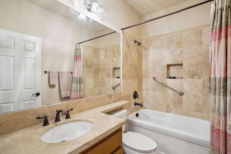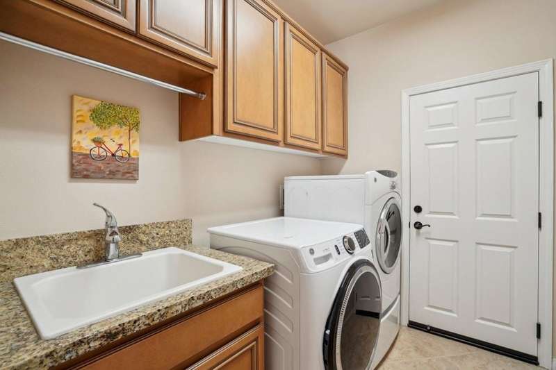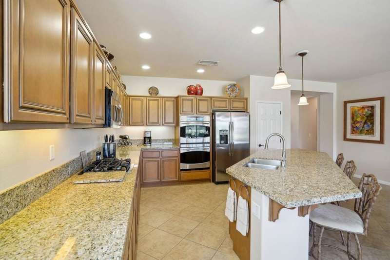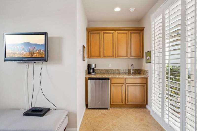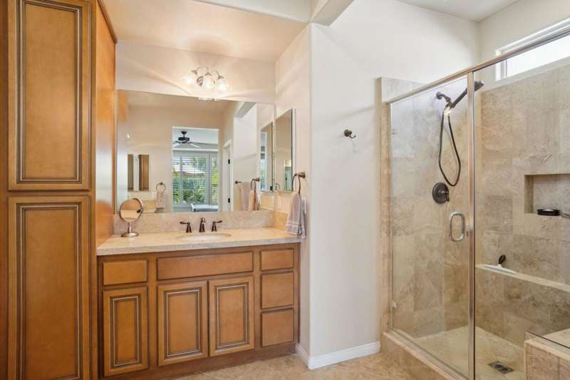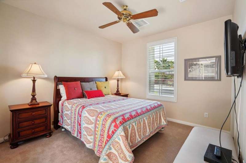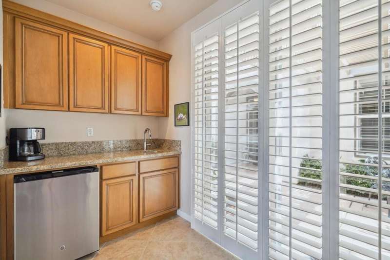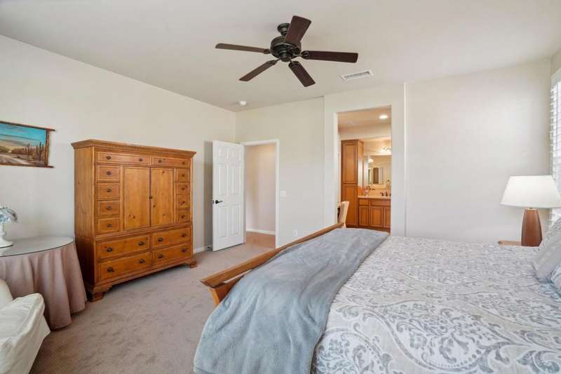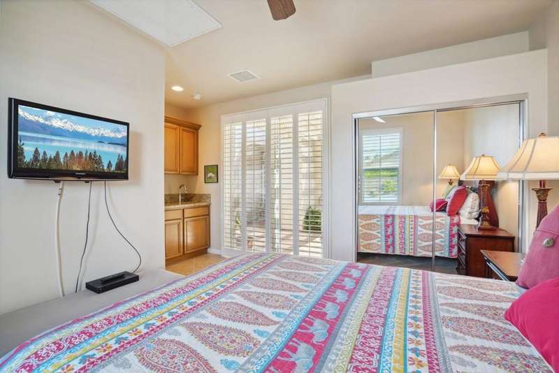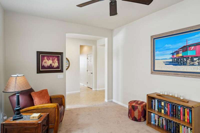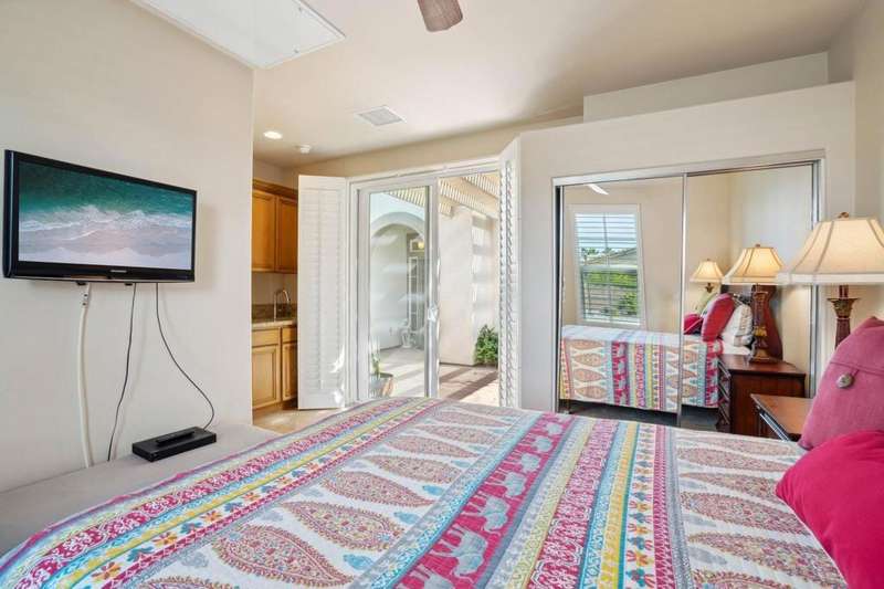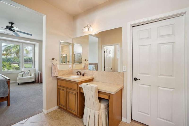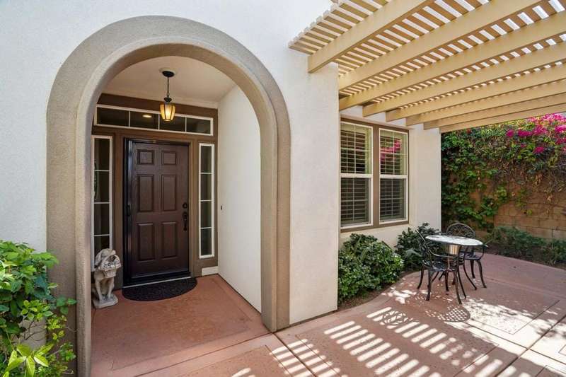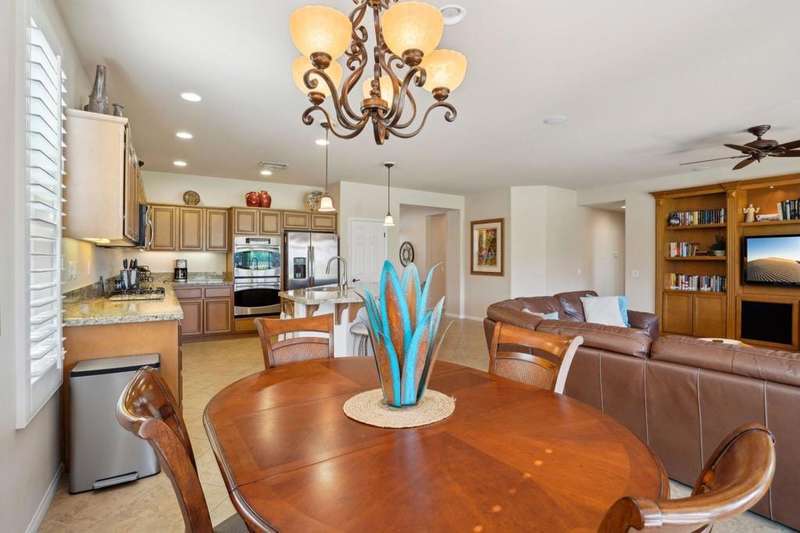 Perched on the 4th fairway of the prestigious Golf Club at La Quinta, this Monterey Plan stunner offers jaw-dropping Southern mountain and golf course views that will steal your breath away. Boasting 1,965 square feet of open-concept living, this 3-bedroom, 3-bath home includes a versatile den/office/reading room and a charming detached casita complete with full bath, fridge, and sink--perfect for guests! Enter through a wrought iron gate into a pergola-covered courtyard and step inside to discover tile flooring, custom window treatments, a great room with built-in entertainment center, surround sound, and plantation shutters. The adjacent chef's kitchen dazzles with stainless steel appliances, granite slab countertops, a prep island with bar seating and pendant lighting, double ovens, gas cooktop, and walk-in pantry. The primary suite is a serene retreat featuring a bay window, marble finishes, dual vanities, walk-in closet, and spa-inspired shower. With solar, a spacious laundry room, professional landscaping, misting system, and low-maintenance artificial turf, this entertainer's dream is made for relaxed desert luxury. Make an appointment today to take a closer look at this gorgeous residence.