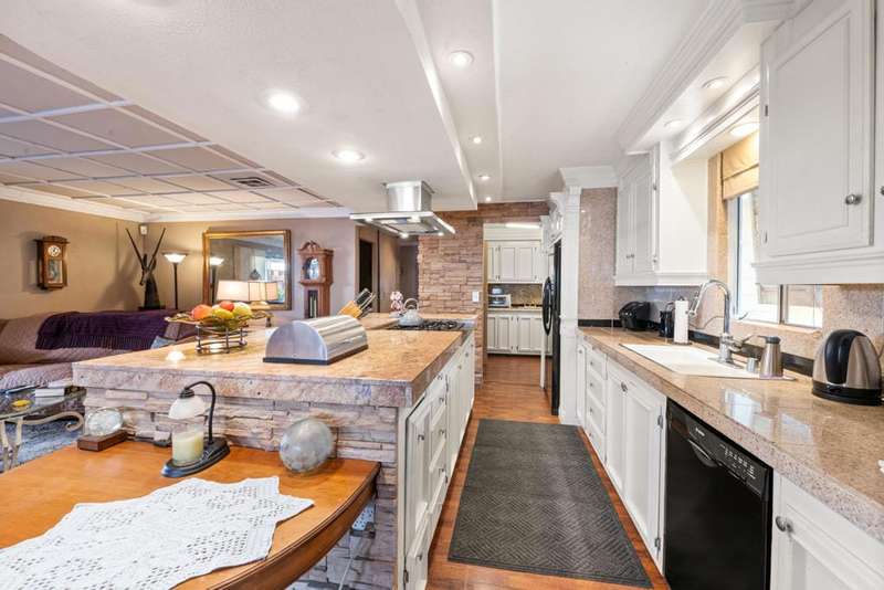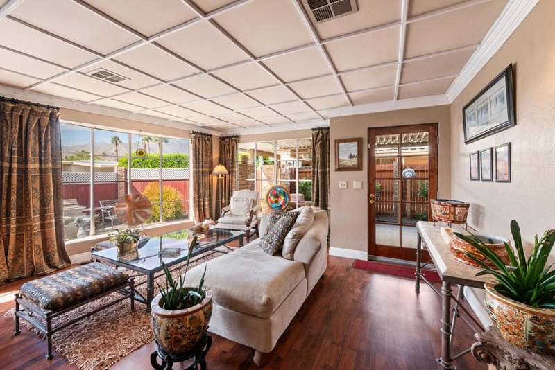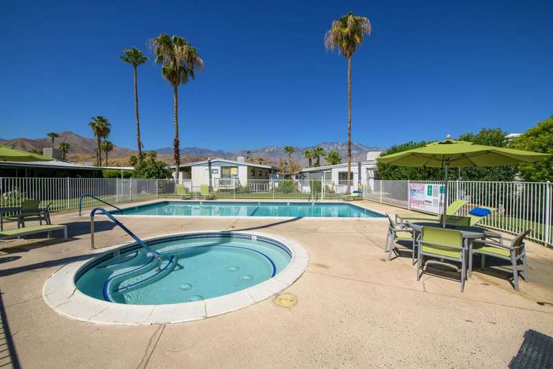This home is truly unique. With over 2100 sq ft of living space there is lots of room within this open floor plan to relax or entertain family and friends. Mountain views are enjoyed from the expansive living, dining and family room. Wood and laminate flooring, crown molding, and recessed lighting on dimmer switches are a few of the interior amenities. If you love to cook you'll enjoy the updated kitchen with 5-burner gas cooktop in the center island. The main bedroom features an ensuite with soaking tub, tiled shower and dual vanities. Another bedroom, also with ensuite has patio access. The third bedroom is currently utilized as a den/office. There is also a hall bathroom. The laundry room has a sink and multiple storage cabinets. A covered patio is the perfect place to relax and enjoy the outdoors. Enjoy the amenities in this 55+ RENT CONTROL community offering pools, spas, clubhouse, fitness and RV/Additional vehicle storage. No HOA. The PARK owns the Land. SPACE RENT is $695.99 /month including water, sewer and trash pick-up. Conveniently located to Trader Joes, Target, dining hiking, Tahquitz Public Golf and within minutes to Downtown Palm Springs.