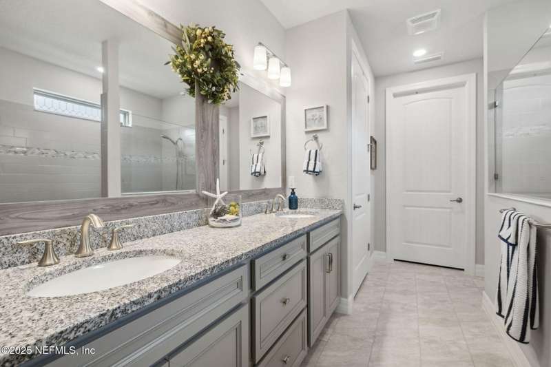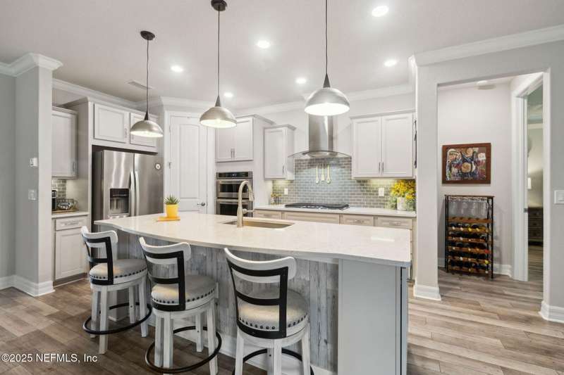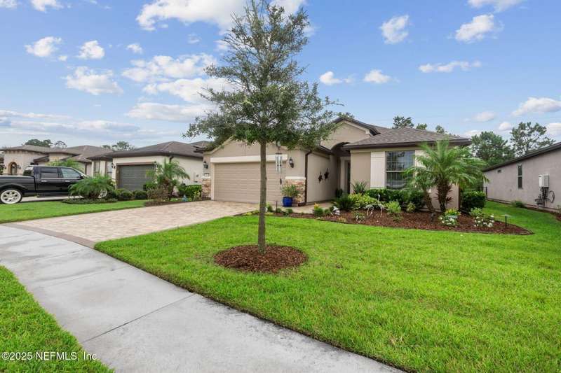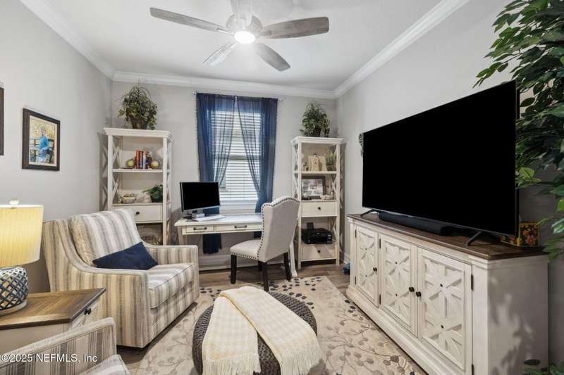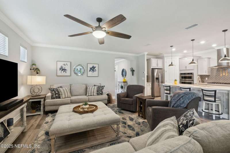 This home truly shows like a model AND the furniture is negotiable!! Floorplan is open and spacious with 3 full bedrooms, office and two baths and unlike anything else on market at this time in this 55 plus community of Bridge Bay at Bannon Lakes. Conveniently located just minutes to historic St. Augustine with its amazing restaurants and beaches. Home has a beautiful kitchen with large island with quartz countertops, tile backsplash and gas cooktop which opens to the large eat in area and spacious family room. Owners suite is large with glamour bath with double vanities, large walk in shower and oversized walk in closet. The family room has triple sliders that open to spacious tiled, screened patio large enough for any size get together and a gas grill. Two more bedrooms with full bath and a office with double doors complete this home. Upgraded LVP flooring throughout, no carpet. Garage has epoxy floors. Large backyard. This home is a dream and will not disappoint.