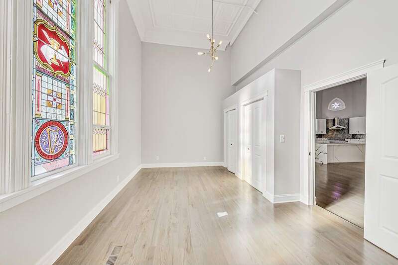 Welcome to 200 W Crawford Street, a truly unique property that masterfully combines the timeless beauty of a historic church with the modern luxury of a fully remodeled residence. Spanning over 5,000 square feet of finished living space, including a beautifully finished basement, this extraordinary home offers an abundance of room for both family living and entertainment. The space has been thoughtfully updated, preserving the church's original charm while incorporating the highest standards of modern comfort. As you step inside, you're greeted by a grand, open-concept living area that's flooded with natural light from the stunning original stained glass windows. The soaring ceilings and exquisite woodwork make a striking first impression, while a beautiful fireplace adds warmth and coziness to the main living space, creating the perfect spot for relaxation or intimate gatherings. The chef-inspired kitchen is a dream. Just beyond the kitchen, the expansive dining area flows seamlessly into the living room, ideal for hosting guests or enjoying family meals. The home offers five spacious bedrooms and four luxurious bathrooms, with thoughtful details throughout. The private attic suite, complete with its own bathroom, serves as a peaceful retreat with unique, elevated views of the surrounding area. The fully finished basement provides even more living space, offering endless possibilities for a home theater, game room, or private lounge. This stunning church conversion is truly a rare find-a harmonious balance of history and luxury that offers a living experience like no other. Don't miss your opportunity to see this exceptional residence-schedule a private tour today and experience firsthand the beauty and grandeur of this one-of-a-kind home.