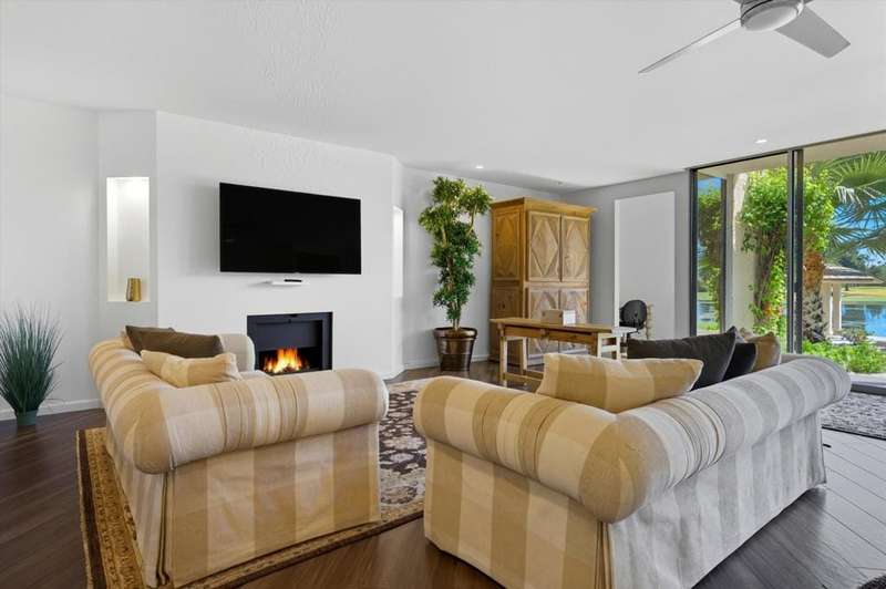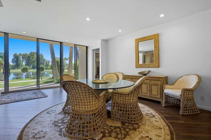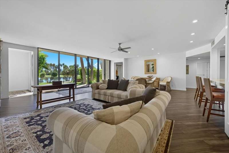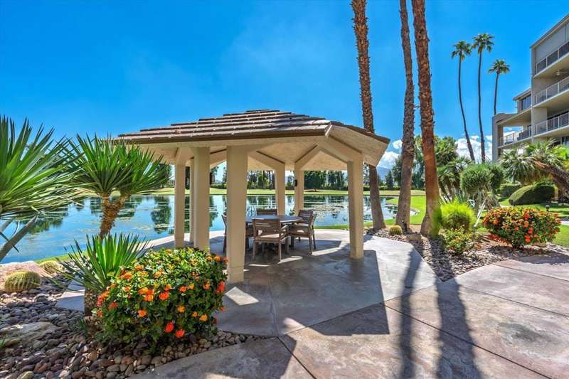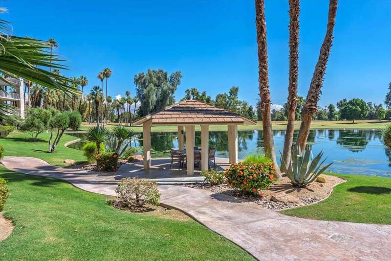 Vacation at home every day when you step into this beautifully remodeled condo and be instantly captivated by breathtaking, unobstructed views all from your living room window. Your personal slice of paradise at one of the most beautiful locations in the desert. Welcome to this gorgeous, fully furnished ground-floor condo, just steps from the community pool and spa. Although listed as a one-bedroom, you'll love the additional room that can serve as a guest room, an office, an art room, or a cozy extra den. As you enter, you're greeted by a bright, open living space, a generous breakfast bar, and a superb kitchen that's perfect for entertaining. Desert Island sits on 25 acres, surrounded by a picturesque lake. The community offers plenty to do, including pools, tennis and pickleball courts, and pedal boats to cruise the lake. The lease includes water, gas, trash, cable TV, and Wi-Fi. The gated subdivision has 24-hour security and an 18-hole golf course just beyond the lake. You'll be near El Paseo's shopping and dining, McCallum Theater, art galleries, farmers markets, Palm Springs Street Market, and Eisenhower Medical Center. Adjacent to the Annenberg Estate (Sunnyland's). You can lease for the season at additional charge, depending on timeframe and availability. Please call for pricing. schedule a tour today and envision yourself relaxing in nature.