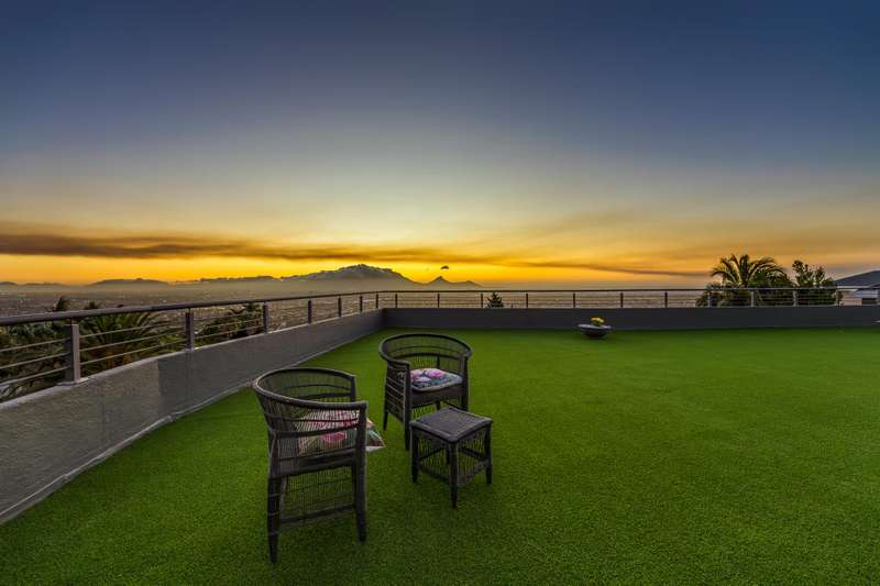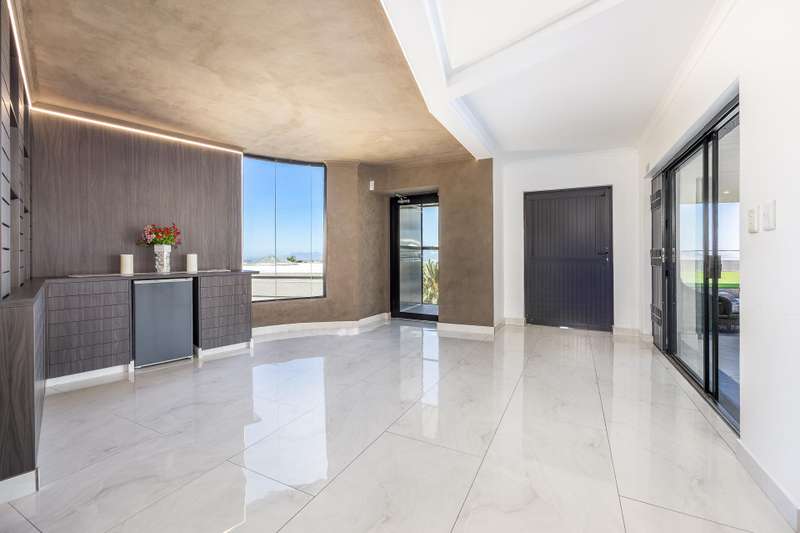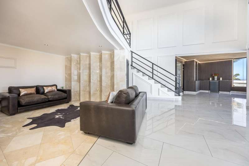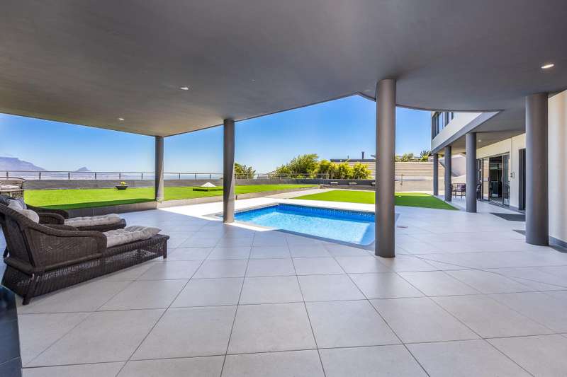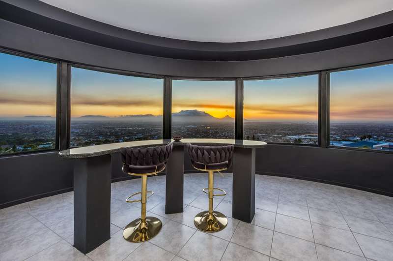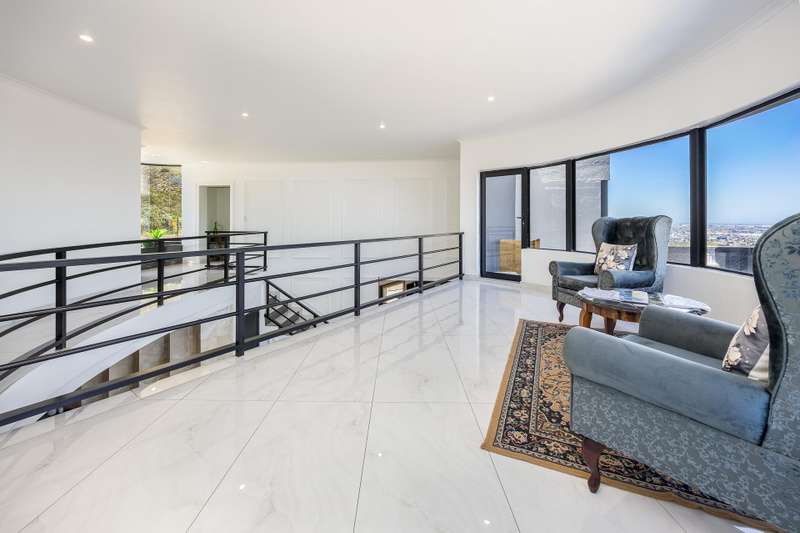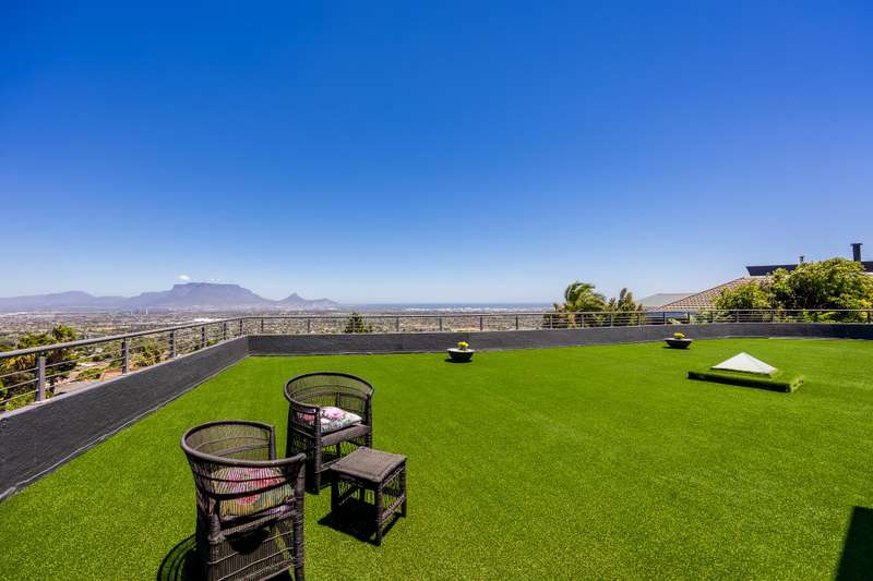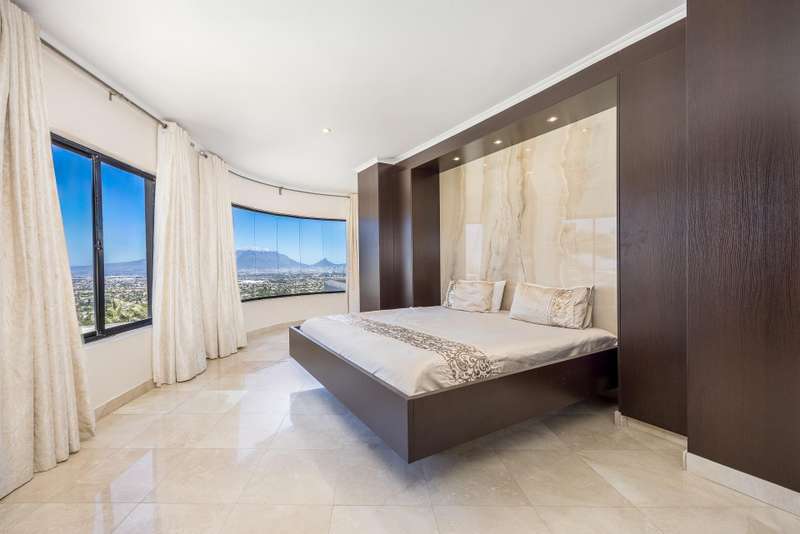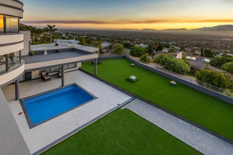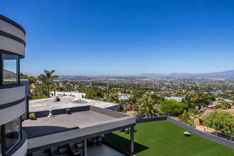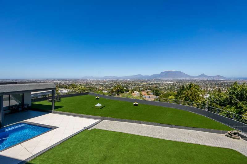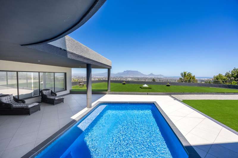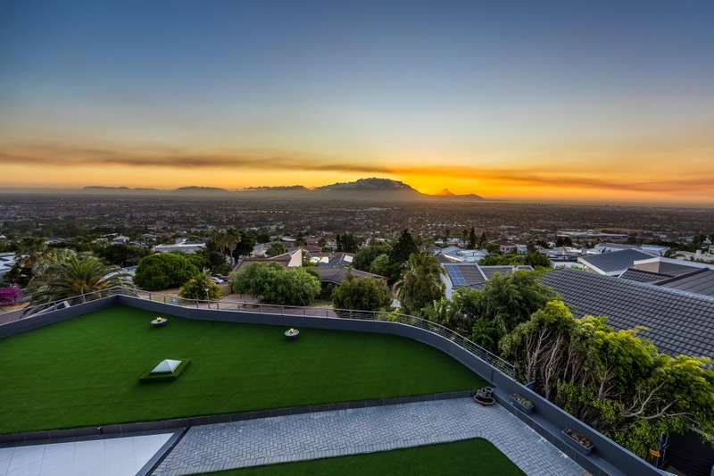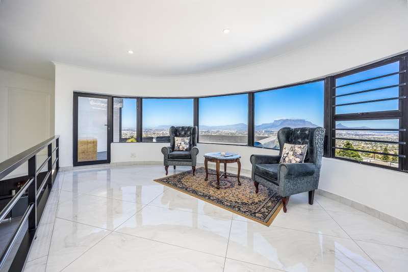 Top-tier Plattekloof living comes to life in this five-level residence, where bold architecture, striking lines, and expansive volumes impress from the moment you arrive. Perched on the slopes of Tygerberg and adjacent to the Nature Reserve, the home commands uninterrupted vistas?Çöfrom Hangklip across the azure waters of False Bay to the iconic Table Mountain, Table Bay, and historic Robben Island. Designed as two distinct yet harmonious living spaces, the property offers flexibility for multi-generational families or investors seeking premium rental opportunities. A three-level main house comprises four bedrooms, while two lower levels accommodate a three-bedroom duplex, combining privacy with cohesion. A separate one-bedroom apartment provides rental income or staff accommodation, complemented by an additional staff room at the rear. The main house flows effortlessly from the lift lobby into formal and informal living areas, an open-plan kitchen fitted with a 6-burner gas cooker and electric hob. The guest bedroom suite is also located on this level. Living spaces extend to the pool terrace, creating a seamless indoor?Çôoutdoor experience. The middle level hosts the main bedroom suite, two additional bedrooms with en-suite bathrooms, a pajama lounge, and a terrace that frames spectacular sunsets over the Atlantic, creating a daily display of Cape Town's natural beauty. The top floor features an entertainment room with a fireplace, exceptional panoramic views of the Cape Peninsula, and a Juliet balcony overlooking the Nature Reserve. Notable extras include a dedicated study, lift access throughout the main house, water-harvesting tanks, and a state-of-the-art solar and inverter system. Call now to arrange your private and exclusive viewing.