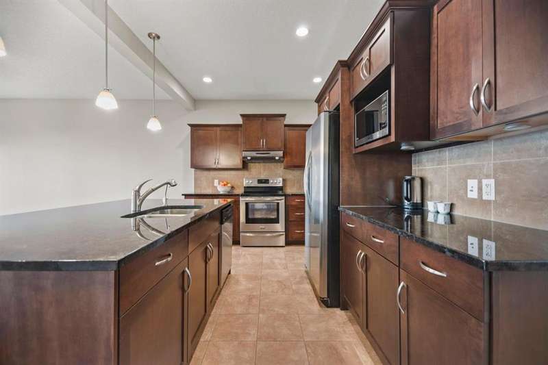 Welcome to 508 Everbrook Way SW — This beautifully maintained and thoughtfully designed two-storey home offering 2,691 sq. ft. above grade, plus 1,134 sq.ft. of fully developed basement is ideally located in the sought-after community of Evergreen. With its warm finishes, functional floor plan, and modern updates, this home combines everyday comfort with timeless style. The inviting main level showcases an open-concept design filled with natural light, featuring rich hardwood floors, a cozy gas fireplace, and spacious living and dining areas — perfect for both family life and entertaining. The chef’s kitchen is the heart of the home, highlighted by dark cabinetry, stainless steel appliances, granite countertops, and an impressive oversized island (4'3" x 7'4") that’s ideal for gathering and meal prep. A versatile main floor flex room with dual built-in study stations offers the perfect setup for remote work or homework time. Completing this level are a convenient half bath and a dedicated laundry room with a sink and upper shelving. Upstairs, the primary retreat feels like a true escape with two walk-in closets and a spa-inspired 5-piece ensuite featuring dual sinks, a soaker tub, and a glass-enclosed shower. Two additional bedrooms, a full bathroom, and a second laundry room designed for air-drying add practicality and ease to everyday living. The professionally developed basement (completed with permits) expands your living space with a generous recreation area, a home gym/flex room, and a comfortable fourth bedroom — perfect for guests or teens. Outside, you’ll love the private fenced backyard complete with a large, freshly painted deck and fence (2025), ideal for BBQs and summer gatherings. This home has been meticulously cared for, with key updates including a new roof (2022), freshly painted front porch and garage door enhance the home’s polished curb appeal, (2025), and a radon reduction system installed in 2025 (with a 10-year transferable warranty) — all offering peace of mind and move-in confidence. Located on a quiet, family-friendly street, this Evergreen location provides quick access to Fish Creek Park, schools, shopping, and Stoney Trail. With thoughtful details, spacious design, and modern comfort throughout, 508 Everbrook Way SW is the perfect place to call home.
