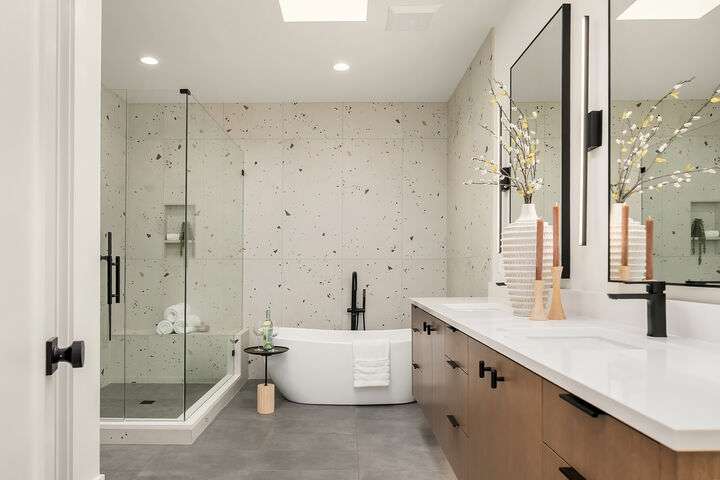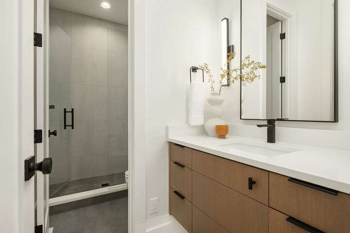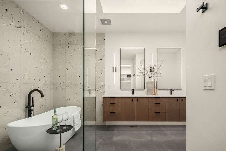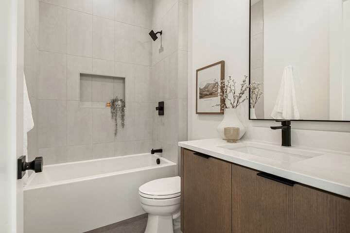 Enfort Homes presents ‘Aspen’, a striking new home perched atop a quiet cul-de-sac in the Highlands neighborhood. Blending modern design w organic warmth, this home offers abundant upgrades adorned w designer touches. A 10’ entry door opens to a great room w soaring 14’ exposed beam & T&G ceilings, flowing to a covered patio w gas fireplace, IR heater, & speakers. The chefs kitchen stuns w a double waterfall quartz island & Thermador appliances. Retreat to the primary suite w a spa-inspired bath, heated floors & WIC. Main-floor office/4th bed adds flexibility, while the lower level hosts a bonus room, ensuite, & add'l bedroom. Thoughtful extras include a fully fenced yard, 2 utility rooms & a versatile storage room ideal for a wine cellar