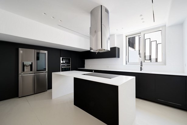 The luxury villa is divided in 4 levels and consists a living room, a fireplace, a kitchen, 4 bedrooms with walk-in closets, 6 bathrooms and a gym.