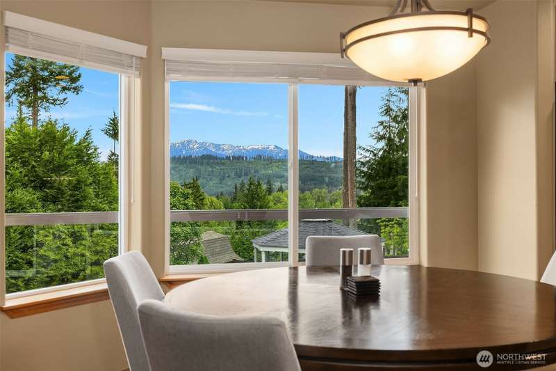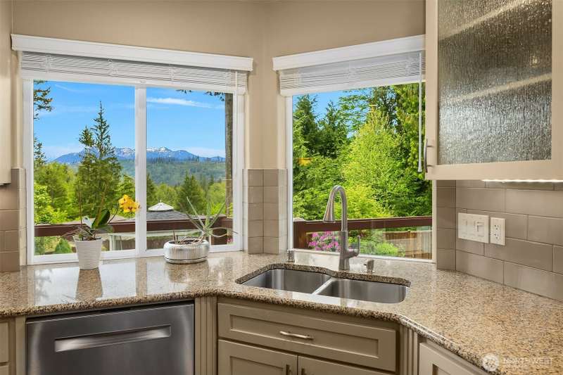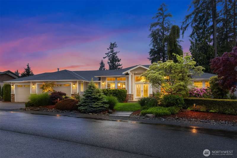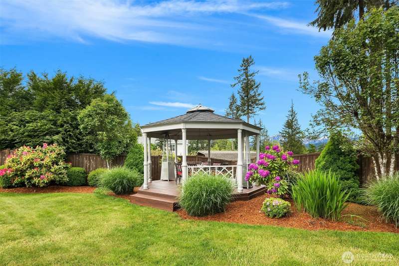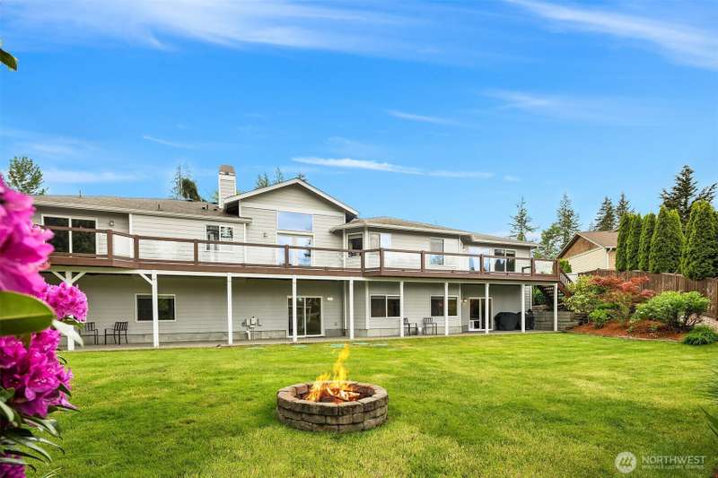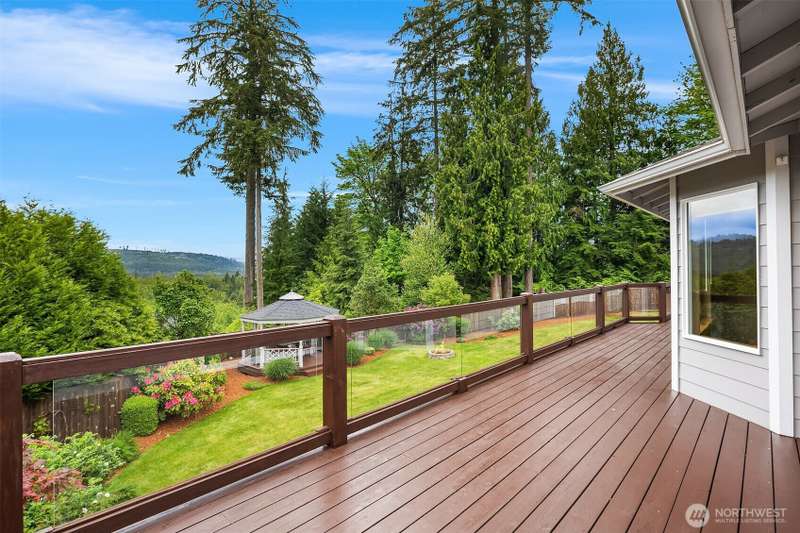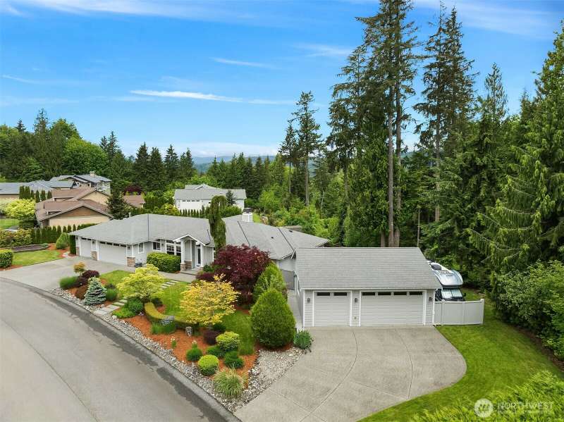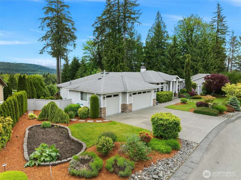 A beautiful and grand home w/ unobstructed and protected views of the Cascade mountains! This hard-to-find rambler w/ a daylight basement is perfectly designed for comfort and entertaining. The main level features a beautifully updated kitchen w/ granite counters, stainless appliances, island, and casual dining space. French doors open to a vast view deck overlooking manicured yard, gazebo and green belt. The light-filled daylight basement with 10-foot ceilings is ideal for guests or MIL, with 2 beds, office/den/game room, wet bar, rec room, and dining area. Smart lighting, generator, heat pump/AC. Attached 3-car garage plus a detached 30x30 shop/garage and 10x12 shed. Total of 6 car garage. RV parking w/ all hookups completes the package!