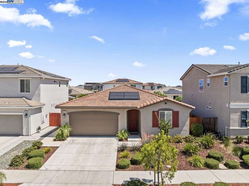 Welcome to 323 Sacramento St in the desirable Stanford Crossings community of Lathrop! Built in 2021 by Meritage Homes, this energy-efficient 4-bedroom, 2-bath home features signature insulation for year-round comfort and savings. The open-concept great room is perfect for modern living and entertaining. The spacious primary suite boasts a resort-style bathroom and a huge walk-in closet. Enjoy a finished garage and a beautifully landscaped backyard with a sprinkler system and a stylish pergola—perfect for outdoor gatherings. Paid-off solar panels and a water softener add extra value. Conveniently located near parks, schools, trails, river access, shopping, dining, and with quick freeway access—this home has it all! **Seller is open to providing closing cost incentives towards closing costs and buy down.**