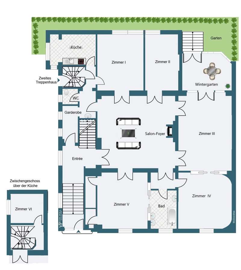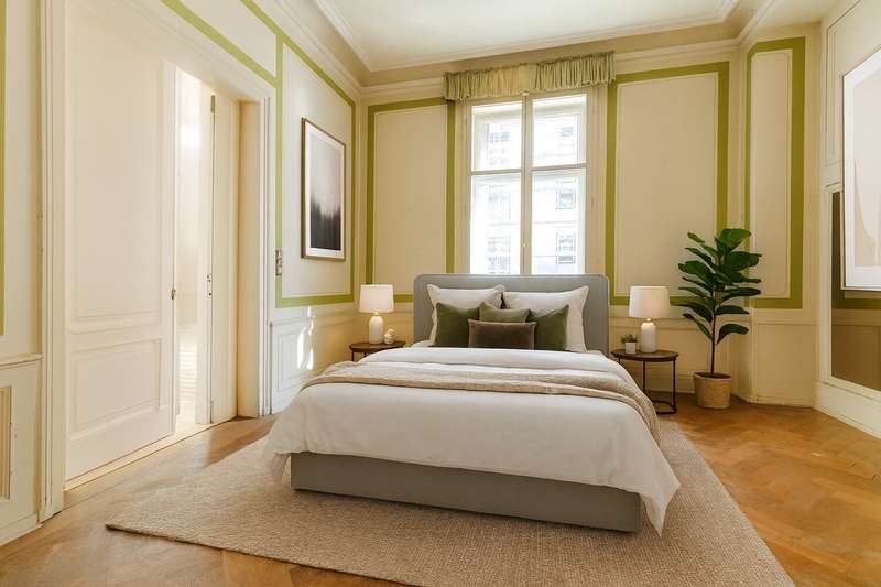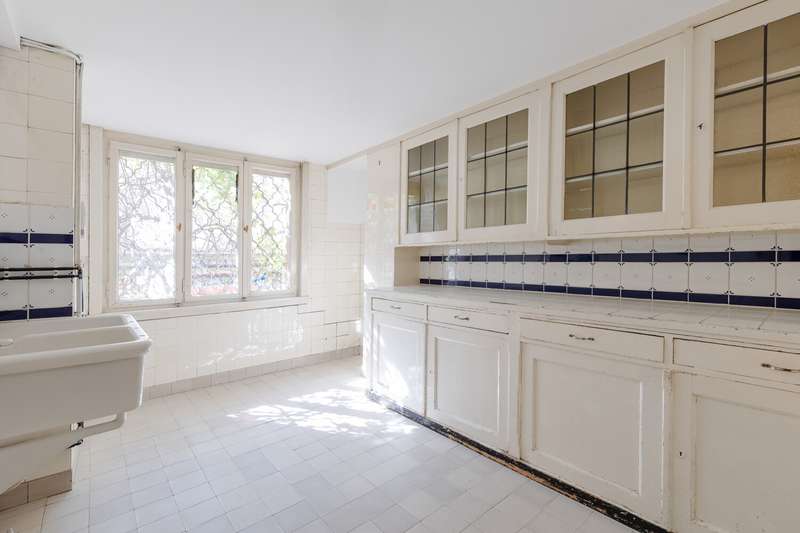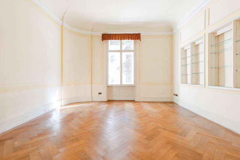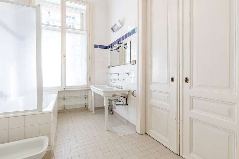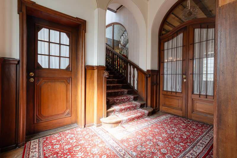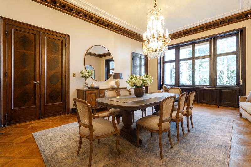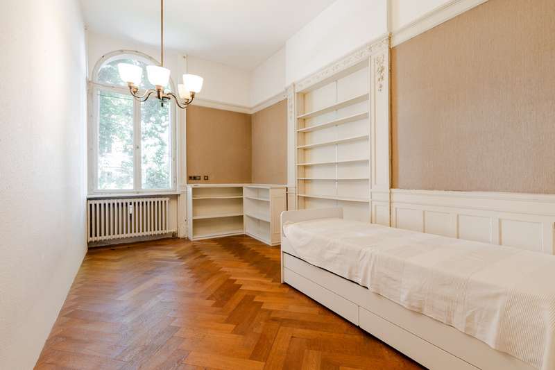 This exceptional mezzanine apartment in a late classicist villa dating from 1865 offers the rare opportunity to live in a cultural monument with incomparable flair. The building, once part of a stately ensemble, impresses with its historic architectural elegance and the exceptionally high degree of preservation of the original stylistic elements. As you enter the building, you can sense its history and museum-like character. The apartment is accessed via the stately staircase: The spacious salon-style foyer with its décor welcomes residents and guests with a warm yet prestigious atmosphere. The spacious living floor has three entrances - the main entrance, access via the checkroom with vestibule and the historic servants' entrance - and radiates nostalgic authenticity. The impressive room height of around 3.90 meters ensures spaciousness and a magnificent feeling of living. The interior has been preserved in its original state: Doors, windows, fittings, vestibule, historic guest WC and bathroom with original fittings. There is a servant/guest room above the apartment. The many unique details make this apartment a real gem for lovers of classic architecture. It opens up a wide range of possible uses: In addition to a stylish office, a dining room and several bedrooms, there is the light-flooded conservatory, which faces west and has electricity and water connections. The charming conservatory provides access to the mature garden. This raised first floor apartment is far more than just a home - it is a statement of individuality, style and history. Anyone looking for something special will find a unique retreat in the heart of the Westend that combines living comfort with historic architecture.