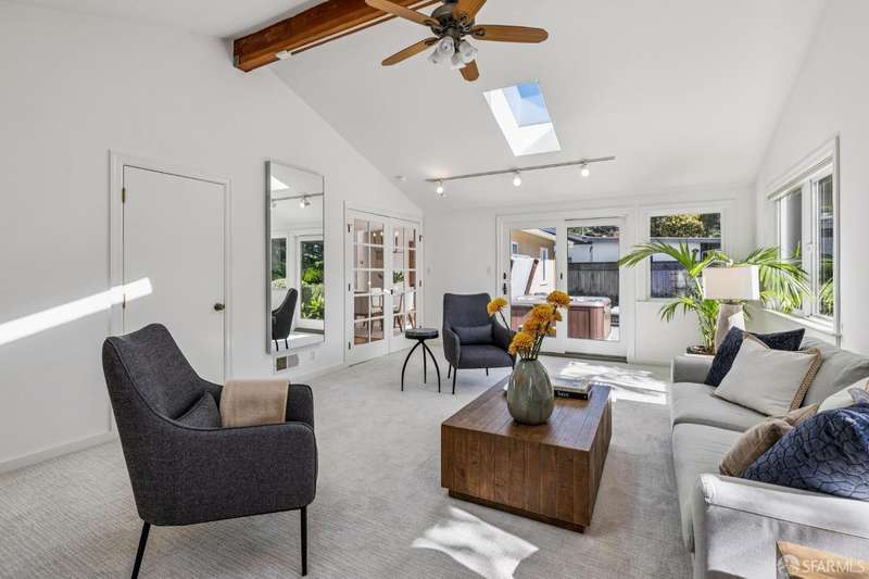 Peaceful Coastal Listing in Pacifica- Discover this beautifully updated 3-bedroom, 2-bath home with a private primary en suite. Designed for comfort and style, this home features an inviting, light-filled family room with new carpet and views of the lush coastal mountains. The updated kitchen and baths combine modern finishes with timeless appeal, while newly refinished hardwood floors add warmth and character throughout. Unwind outside in the relaxing hot tub, enjoy the freshly landscaped, low-maintenance front yard, or plant your favorites in the raised garden beds out back. A spacious two-car garage offers generous storage and convenience. Experience the best of Pacifica's Linda Mar neighborhood peaceful coastal lifestyle surrounded by beaches, trails, and nature, yet just a short drive to the city.