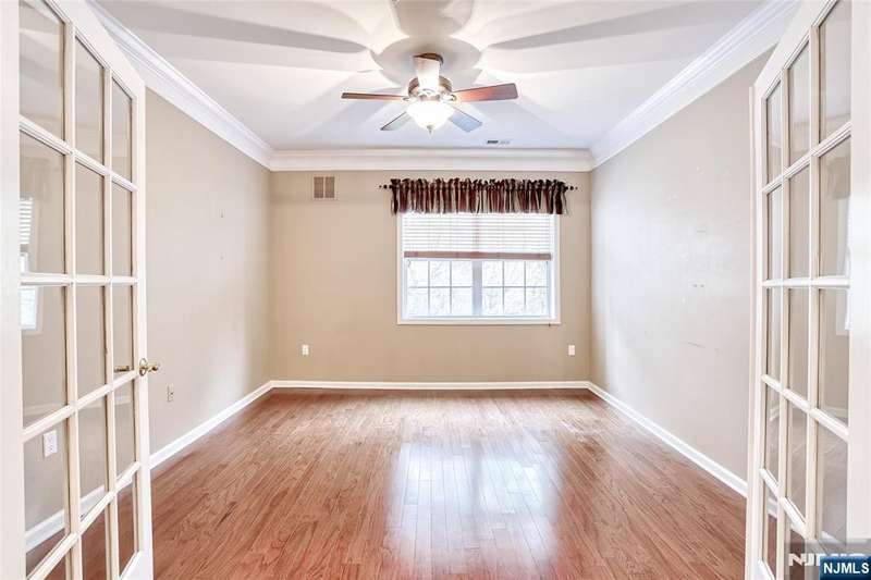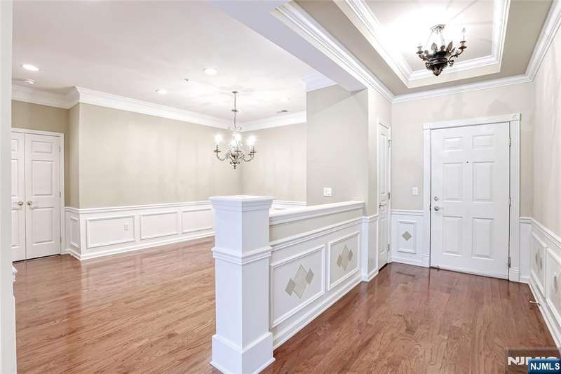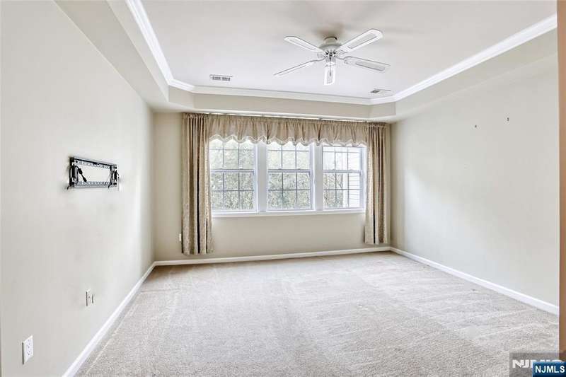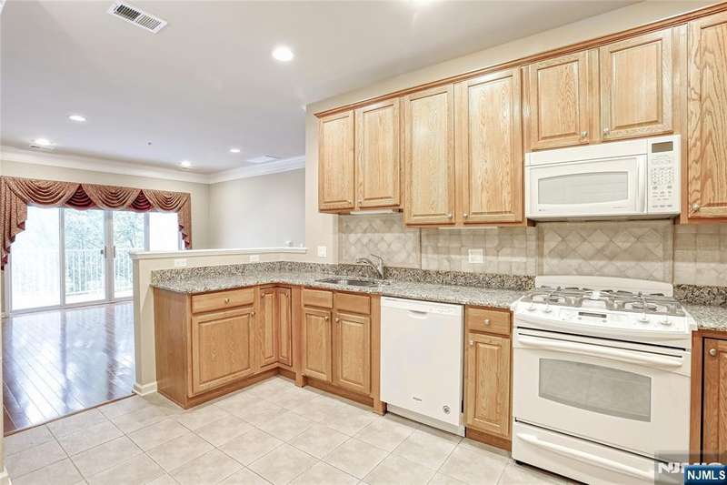 Desired view facing the woods, wonderful unit in Building 6 on the 3rd floor. This is a 1768 SF Colfax model in Wanaque Reserve, a Del Webb active adult 55+ community. The home features hardwood floors, a primary bedroom ensuite with full bath, tray ceiling and WIC, 2nd BR, FB, EIK with granite countertops and tiled backsplash, LR, DR and den/home office with French doors, adding a touch of elegance. The LR sliding doors open to a private balcony. Amenities include a deeded underground parking spot and 24-hour security. The HVAC and foggy windows were replaced. The 20,000 SF clubhouse has a cafe, ballroom, exercise room, theater, sauna, indoor and outdoor pools and more than 45 clubs and activities, which include the travel club (cruises, day trips, casino trips) tennis, pickleball, canasta, poker, golf, etc. A benefit of this building is that it is across the street from the clubhouse. Wanaque Reserve offers a luxurious lifestyle for its residents with a focus on modern amenities, security and a sense of community. the recent renovation adds a fresh and updated living environment.