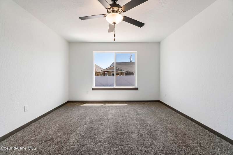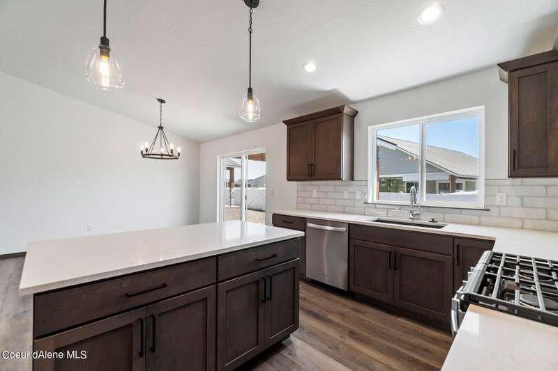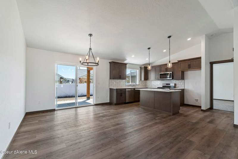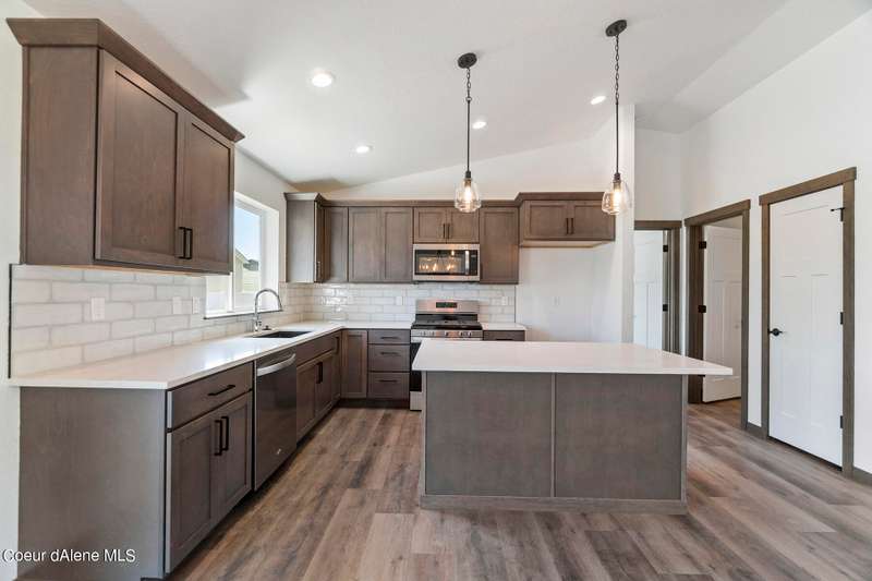 To be built. 3rd Bay garage is 12 wide and 30 feet deep exterior measurement with a 10X10 garage door with opener, gas fireplace, quartz countertops throughout, covered front and rear patio, vaulted ceilings, 95% gas furnace, Nest thermostat, tankless gas water heater, gas to rear patio, gas range, LVP flooring every where except bedrooms and closets, garage door opener, garage man door and front yard landscaping and sprinkler system. This well-proportioned house is waiting for the final owner to give it its finishing touches! With three bedrooms and two bathrooms, this property has plenty of space and a charming layout. The main suite has an ensuite and walk-in closet to maximize your privacy and comfort. The other two bedrooms have practical built-in robes and share a comfortably sized bathroom. The open-plan kitchen is surprisingly spacious, with plenty of storage space in its ample cabinets and quartz countertops.