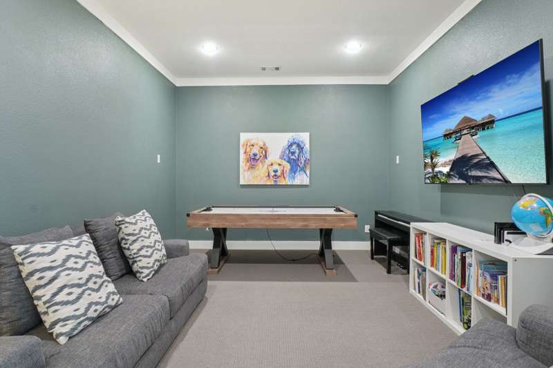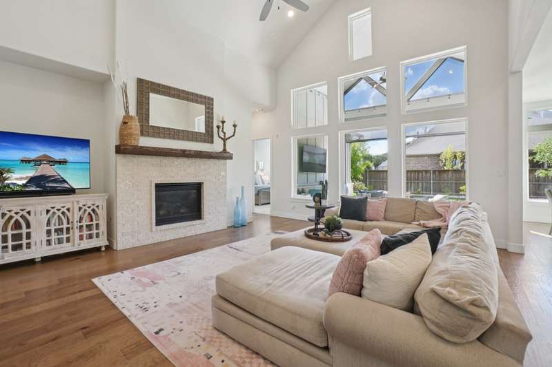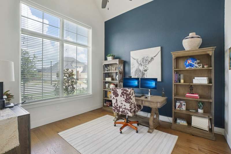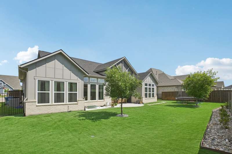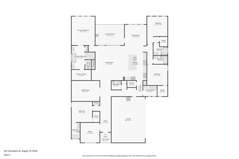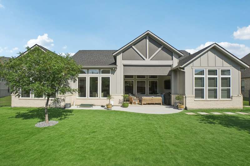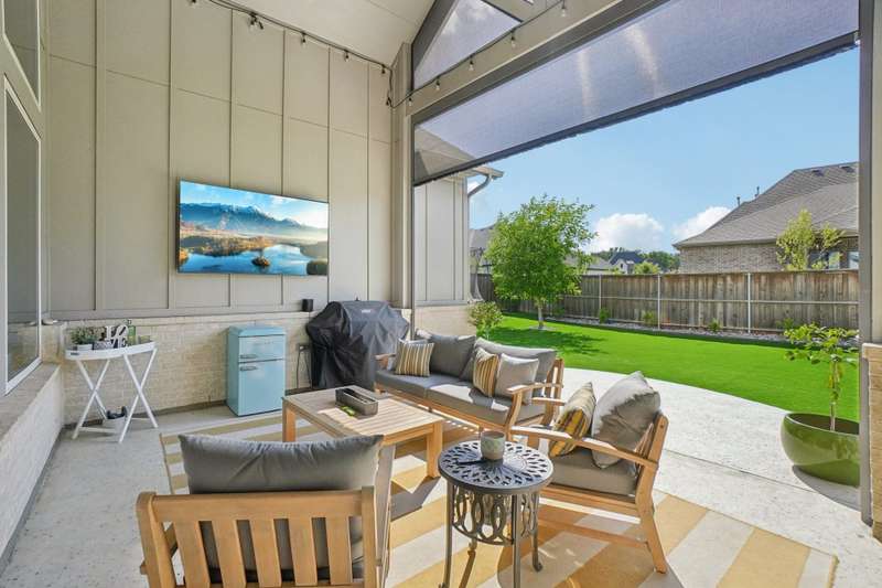 Welcome to luxury single-story living in the heart of Argyle! This stunning 4-bedroom, 4.5-bathroom home offers a thoughtfully designed layout with high-end finishes, functional spaces, and beautiful attention to detail throughout.Step inside to find an open-concept floor plan filled with natural light, warm tones, and elegant touches. The dedicated home office with glass French doors provides a quiet and stylish space for remote work or study, while the separate media room with sliding pocket doors is the perfect retreat for movie nights or game day gatherings.At the heart of the home, the chefs kitchen is a true showstopper featuring a gas cooktop, double ovens, a large center island ideal for entertaining, and cabinetry extending all the way to the ceiling for both beauty and functionality. The kitchen opens seamlessly into the spacious living and dining areas, creating a warm and inviting space for hosting or relaxing with family.Each of the four bedrooms includes its own en suite bathroom, providing privacy and comfort for family members and guests alike. The luxurious primary suite is a serene escape, complete with a spa-inspired bath and generous closet space.Enjoy indoor-outdoor living at its finest with a covered back patio equipped with a remote-controlled privacy and sun screen, allowing you to create shade or seclusion at the push of a button. The fully turfed backyard offers low-maintenance beauty year-round perfect for kids, pets, or weekend entertaining.Located in a desirable Argyle community known for charm, green spaces, and highly rated schools, this home brings together upscale living, smart design, and modern comfort in a truly exceptional package.EV Charger in garage
