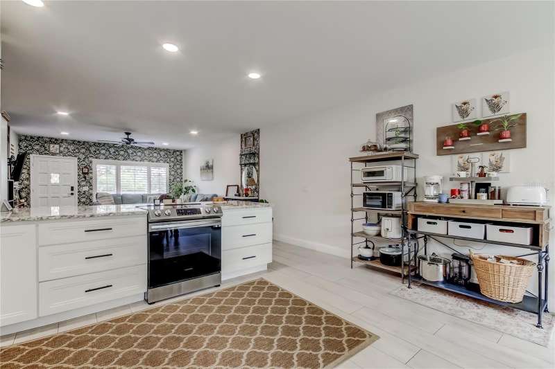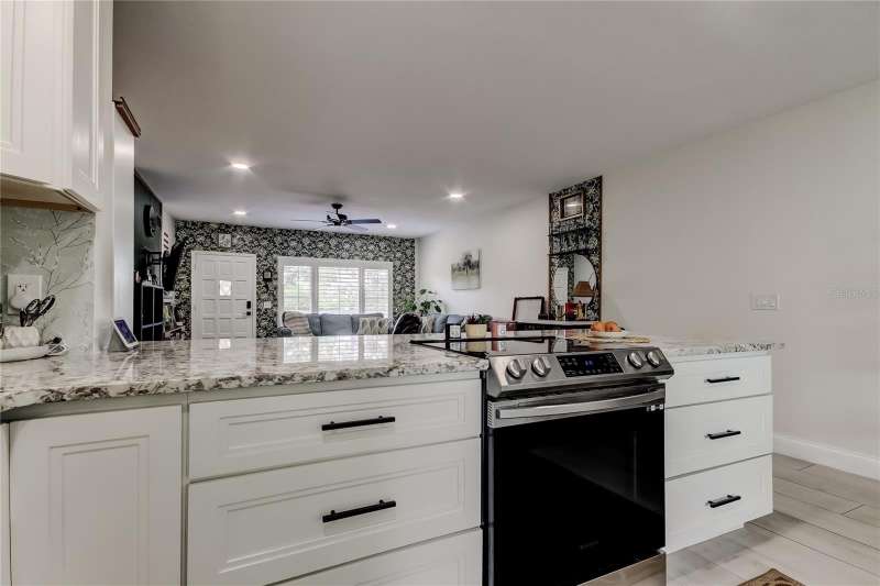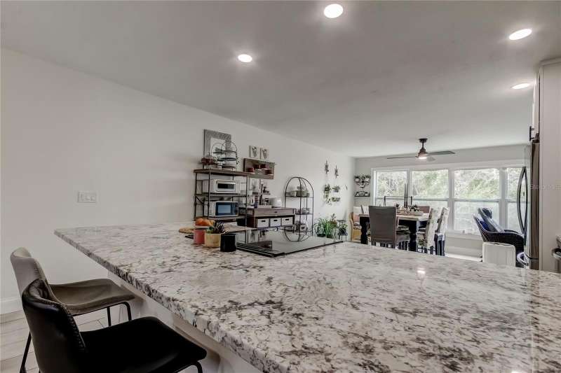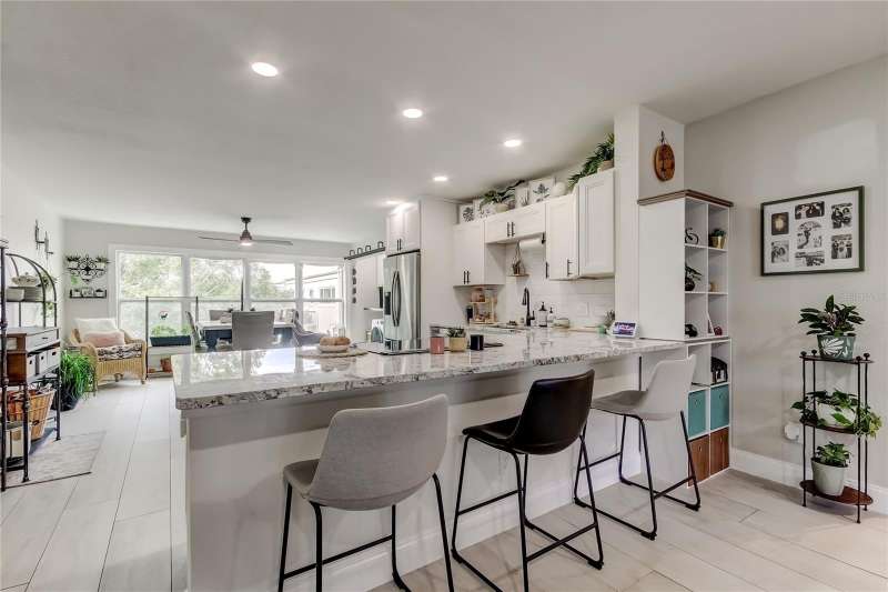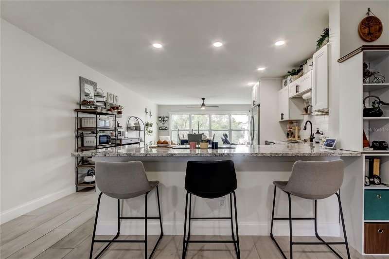 *Modern Elegance Meets Active Living!* You really can have it ALL! SPECTACULAR is the only word to describe this beautifully RENOVATED top-floor, end-unit 2-bedroom, 2-bath condo! Every inch of this home has been thoughtfully and professionally updated 2 years ago with a modern, open-concept design perfect for today’s lifestyle. Step into the new kitchen, featuring an abundance of soft-close cabinetry, granite countertops, recessed lighting, and newer Samsung stainless steel appliances. A stylish barn-door closet houses your very own WASHER and DRYER. Throughout most of the home, you’ll find gorgeous wood-look tile flooring, with plush carpet in the spacious master bedroom. Both bathrooms have been completely remodeled from top to bottom—the master features a walk-in shower, while the main bath offers a new tub with custom tile surround. Every detail shines, from the new vanities and fixtures to the updated lighting, ceiling fans, outlets, and switches. Even the A/C and water heater are only 2 years old! Enjoy abundant natural light from the new kitchen windows, which frame a peaceful wooded view. This corner unit also includes a dedicated parking space conveniently close to the elevator. Located in the highly sought-after, pet-friendly 55+ community of On Top of the World, residents enjoy an incredible array of amenities, including: Two golf courses (one 9-hole and one 18-hole -golf is free for owners!),Two recreation centers and two pools (one heated),Tennis, pickleball, and shuffleboard courts, State-of-the-art fitness center, woodworking shop, spa, computer and billiard rooms, Outdoor pavilion, library, dog park, and frequent social events, including shows, food truck nights, and more, Good Karma Café. Each building also offers a bicycle room and private storage space for residents. Conveniently located just minutes from shopping, theaters, and airports, this stunning condo truly offers affordable luxury and carefree living.