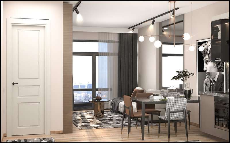 The project offers 1 and 2-bedroom options. The apartments have open-plan kitchens, living rooms, bathrooms, en-suite bathrooms, and balconies. They feature high-quality laminated, ceramic, and granite flooring.