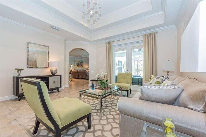 Timeless elegance and modern touches fill this lakefront 4 bedroom, 3.5 bath home in high-end gated community Hunter's Run. Outdoor oasis features a summer kitchen with a grill and screened-in lanai with a pool. Generous living spaces and serene water views make it perfect for entertaining complete with a new 2025 roof, new washer + dryer and a whole home generator. Dive into this fully furnished stunner and enjoy the luxe life! Tenant pays pool and lawn care; pets at owner's discretion. Available on an annual basis.