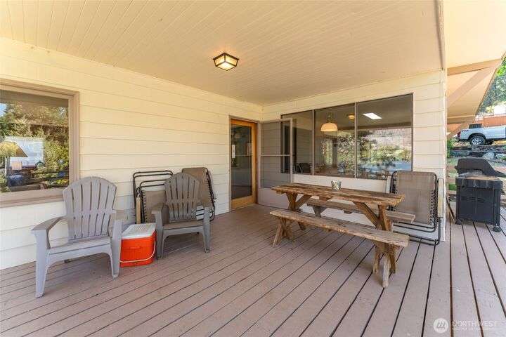 Welcome to 15082 S Lakeshore Road. A few minutes up lake from the State Park, this large, open floor plan on a large piece of waterfront property is well built with great bones. Just needs a little TLC! Main floor boasts a large living space with kitchen and dining area. Three bedrooms and two bathrooms and laundry space. Large covered deck for entertaining. Downstairs features a large bedroom/bonus room and a second kitchen space. Take a few steps down to the lake for a swim or jump in a boat from the large L shape dock. A very accessible, flat, easy driveway with extra parking and a single garage.