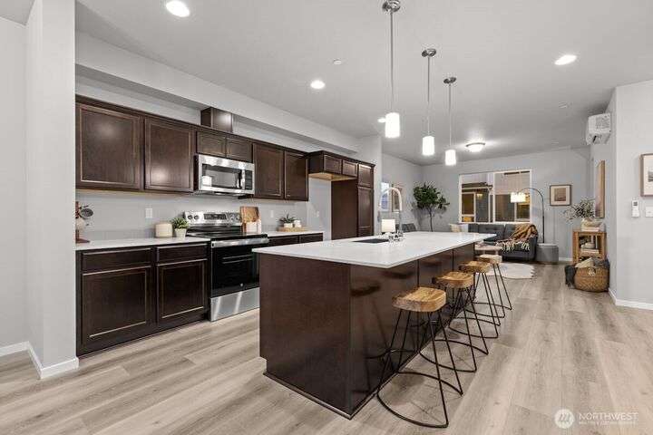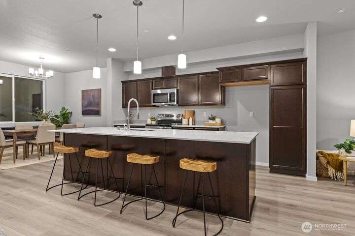 Discover the perfect blend of convenience and comfort at Rainier Townhomes! THE ATLAS (interior unit) offers 1758 sqft of comfortable living space with 4 bedrooms 3 bathrooms and an office space. Rainer Townhomes standard features include quartz kitchen countertops, timeless quality cabinets with crown molding, gorgeous laminate hardwood flooring, and a thoughtfully designed floorplan. Nestled amongst the scenic waterfront parks of the Puget Sound and the thriving city of Everett, this community offers easy access to both nature and your weekday commute. Enjoy the benefits of NEW! New home warranty, energy efficient, lower maintenance, updated safety & modern lifestyle design elements. Fully fenced private zero maintenance backyard!