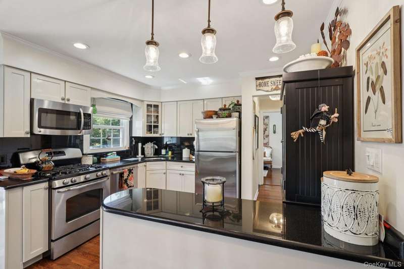 Welcome to this impeccable Cape, located on a beautiful tree lined street in the West Village section of Westbury. From its inviting hardwood floors throughout, to its updated bathrooms and kitchen, this Cape has a refined cozy feel with all the amenities that make it completely move in ready. First floor boasts a beautiful kitchen with stainless steel appliances and granite countertops that flows into formal dining room and extra breakfast area. A sitting room and bedroom/office round out this spacious floor. Second floor has 2 bright and airy bedrooms, both with skylights, and a full bath, with ample storage space within the crawlspaces. Basement has large TV room with separate utility room. The backyard is perfect for entertaining, featuring a paver patio, picturesque landscaping and privacy hedges. A detached garage and long driveway make this a dream home.