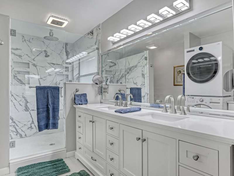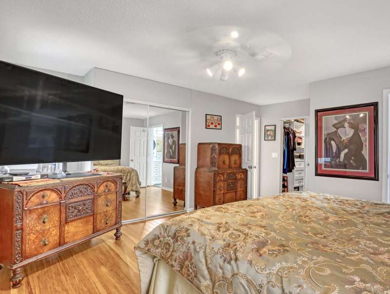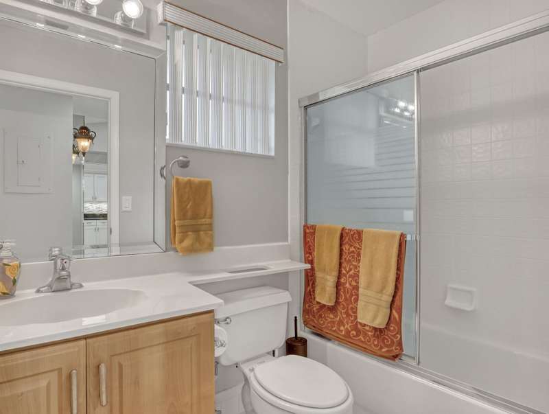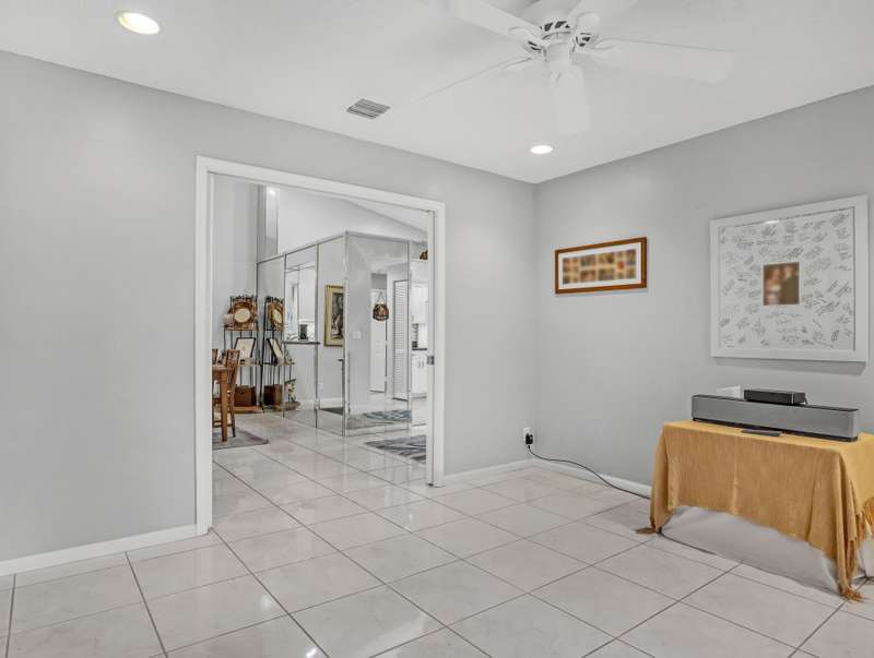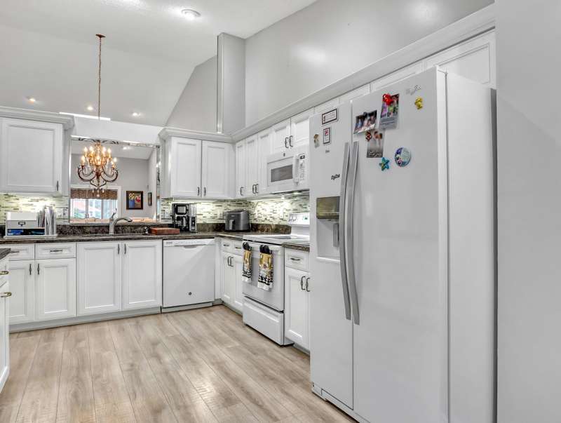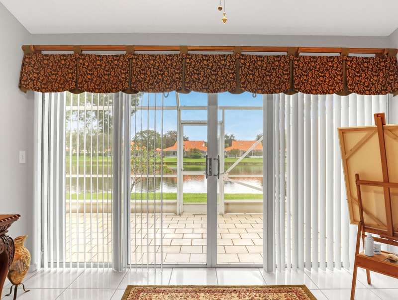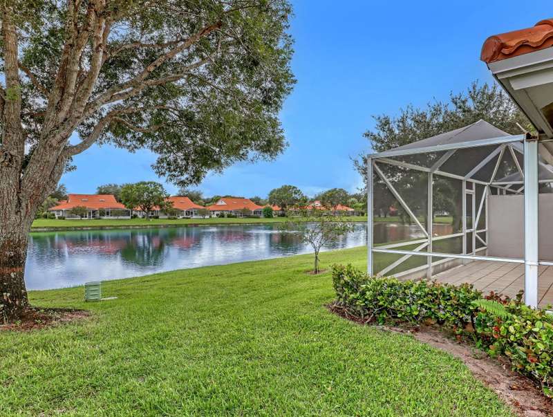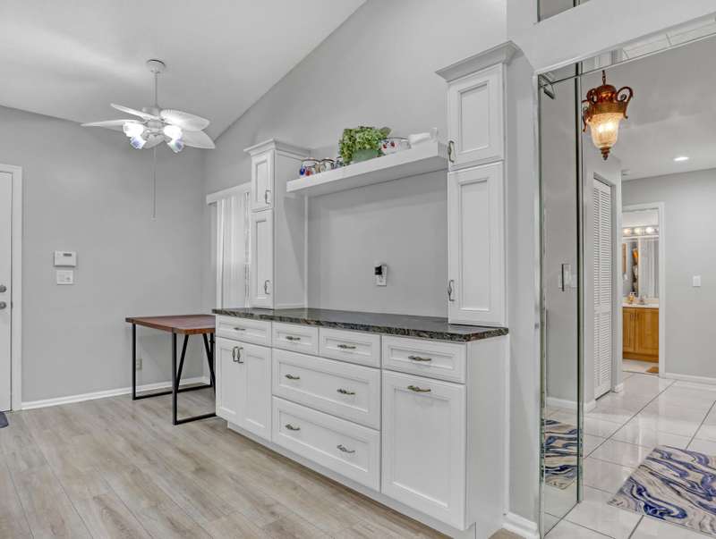 Enjoy this spacious home two bedrooms, two bathrooms with den. The beautiful lake view from the living room with vaulted ceiling adds to the serenity of the house. The main bedroom was recently updated with bamboo wood floors and an updated ensuite bathroom. The kitchen has been beautifully enhanced with a custom-built wall of cabinetry featuring granite countertop workspace, two tall pantry style storage towers and a floating display shelf for added style and function. All existing drawers were replaced with dovetail, soft close drawers and cabinet fronts were upgraded with new soft close doors. The community clubhouse has an expected remodel completion of December 2025.