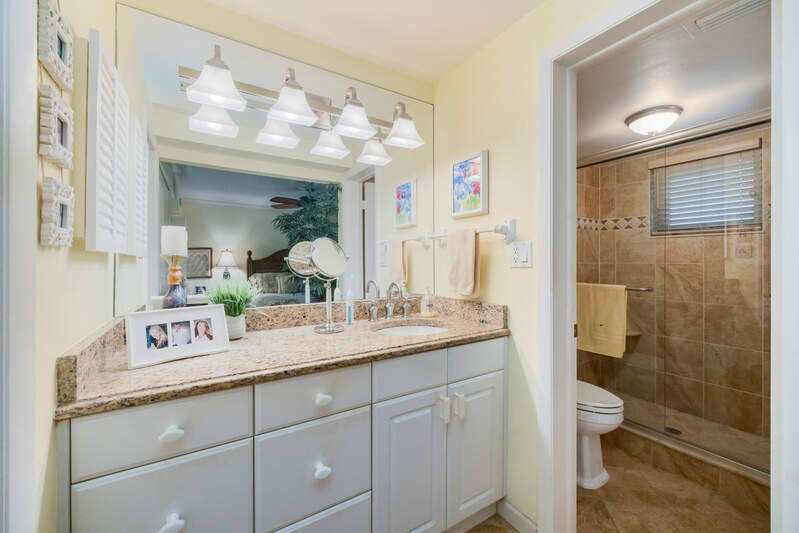 Welcome to Hidden Lake Villas, where resort-style living meets an unbeatable Naples location! This beautifully updated 2-bedroom, 2-bath ground floor condo is less than a mile from the Gulf's white-sand beaches, vibrant shops, and popular restaurants. Enjoy peace of mind with impact-resistant windows and doors, electric shutters, a brand-new roof and new AC in 2021. The charming kitchen is appointed with stainless steel appliances, granite countertops, and white shaker cabinetry. Enjoy the spacious screened lanai overlooking the tranquil lake. Additional features include crown molding, plantation shutters, and a guest bedroom with a convenient Murphy bed. Hidden Lake Villas offers an active lifestyle with tennis, social activities, gas grills, a clubhouse with fitness room, library, and function space, plus a 37' x 52' geo-thermal heated pool. Residents also have the option to join the Park Shore Association for exclusive beach access at Raymond Lutgert Park. Ideally located in the heart of Naples, this condo is the perfect blend of comfort, convenience, and coastal living.