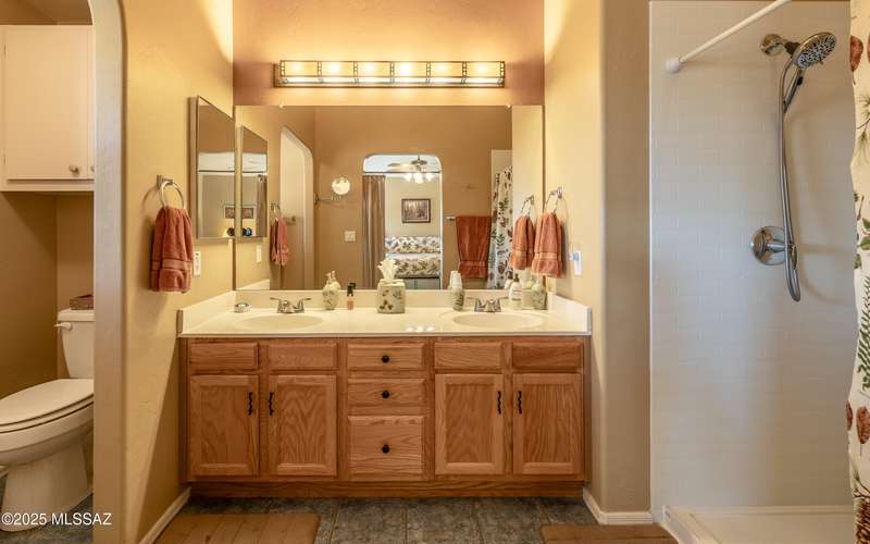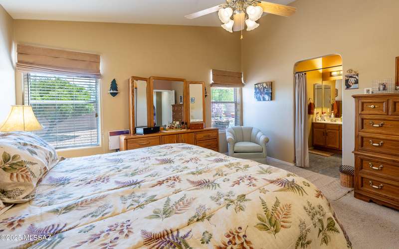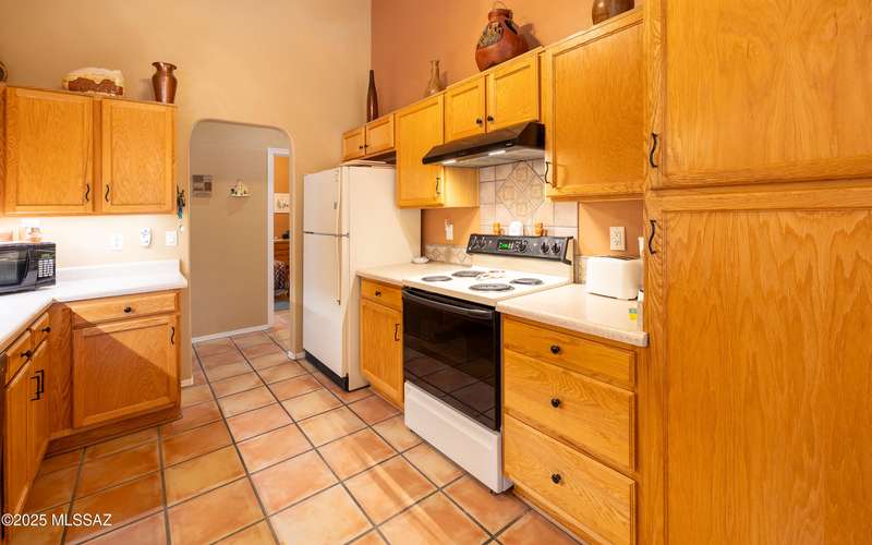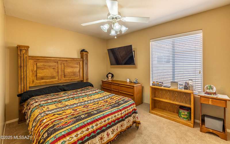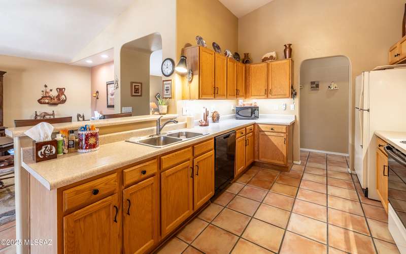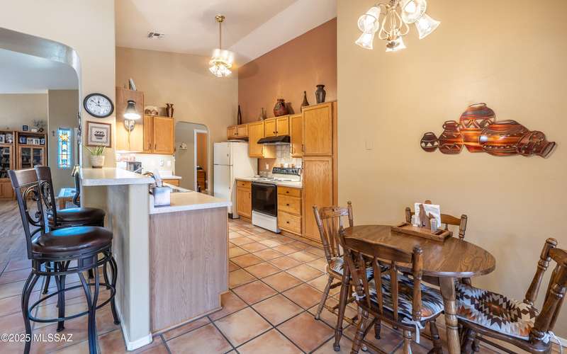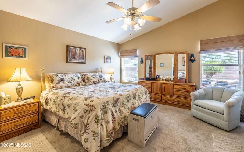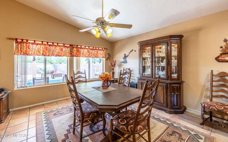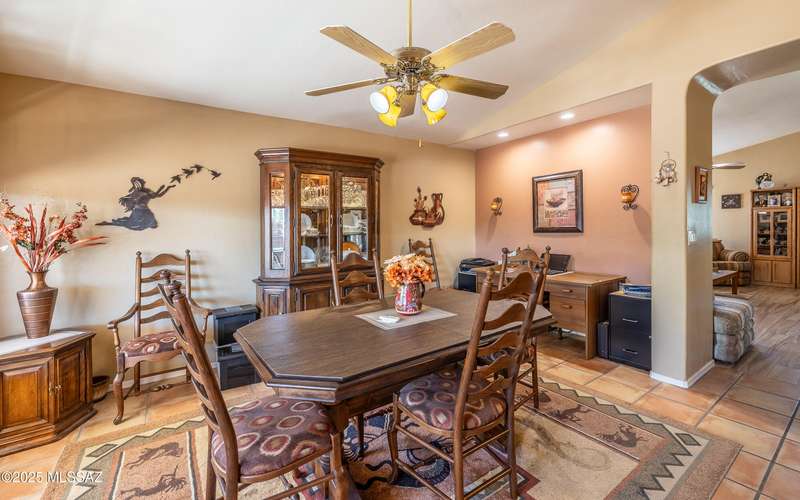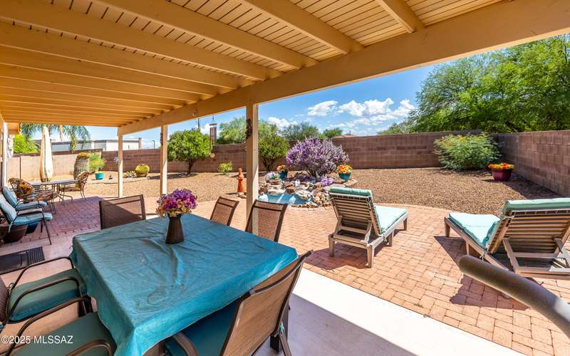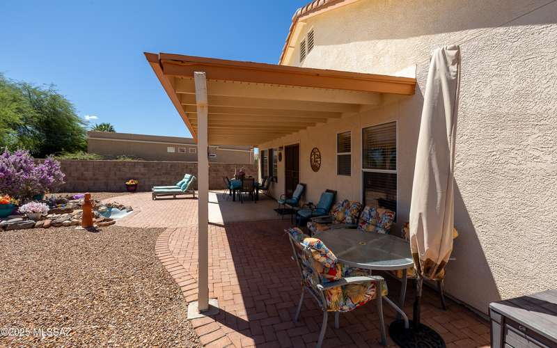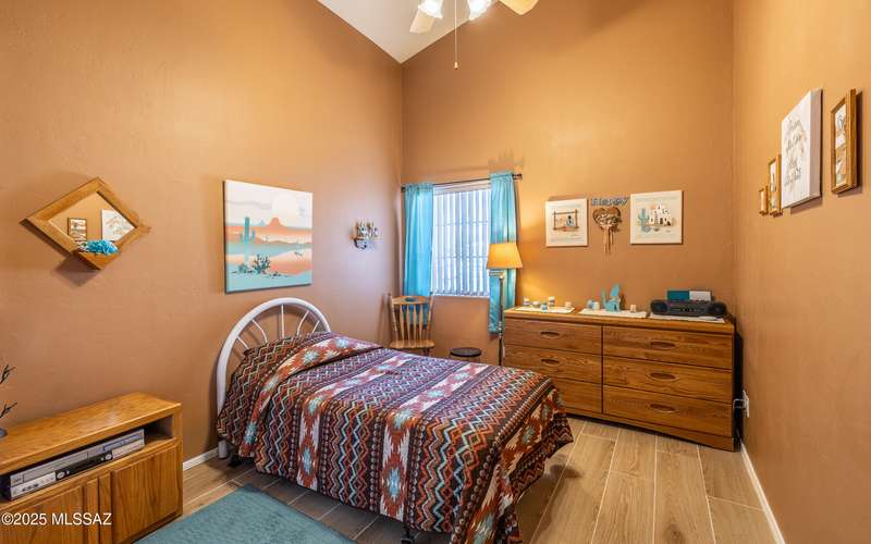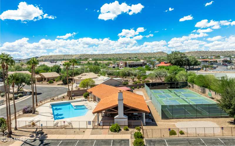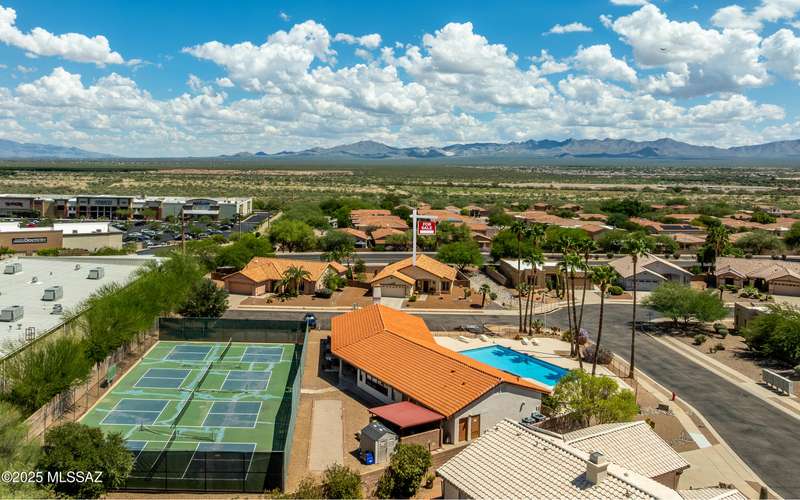 Desirable La Joya Verde subdivision! unbeatable location with no GVR. This Immaculate single family home offers two bedrooms, two baths and the versatile office/den that doubles as a third bedroom to suit your needs, Large windows fill the open layout with natural light, highlighting elegant wood plank tile, classic Saltillo tile, and stain glass window in entry way. The kitchen flows warmly into casual and formal dining spaces, while French doors lead outside to a private oasis. The home sits on .22-acre lot and offers exceptional privacy and distance from neighbors. Home offers remarkable convenience-just a short stroll to recreation center, pool, pickleball courts, shopping, restaurants and I-19 only minutes away. This home blends comfort and convenience-creating lasting memories.