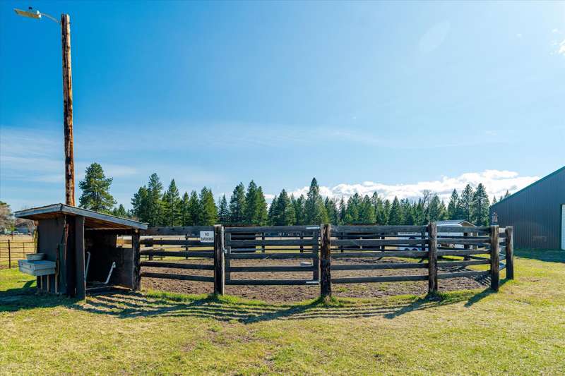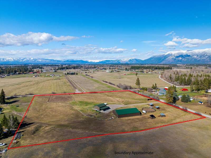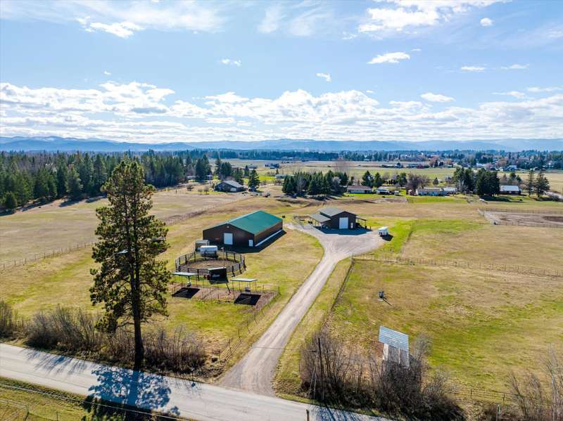 Horse lover's dream on 9.8 acres in East Kalispell! Fully set up for horses with welded metal perimeter fencing, cross-fencing for paddocks and grazing, multiple horse shelters, a round pen, and a fully enclosed 60'x96' sand-floor riding arena. A 32'x44' heated shop with 16' walls and a 14' roll-up door with overhangs on both sides for open storage. The shop also includes a finished apartment with 2 beds, 1 bath, kitchen, office, and spacious upstairs living area. In-floor heat powered by natural gas. 4-bedroom septic, private well, watering stations, and breathtaking mountain and meadow views. Peaceful country setting just minutes from town. Live in the apartment while building your dream home, multiple great building sites. No covenants, bring your animals!